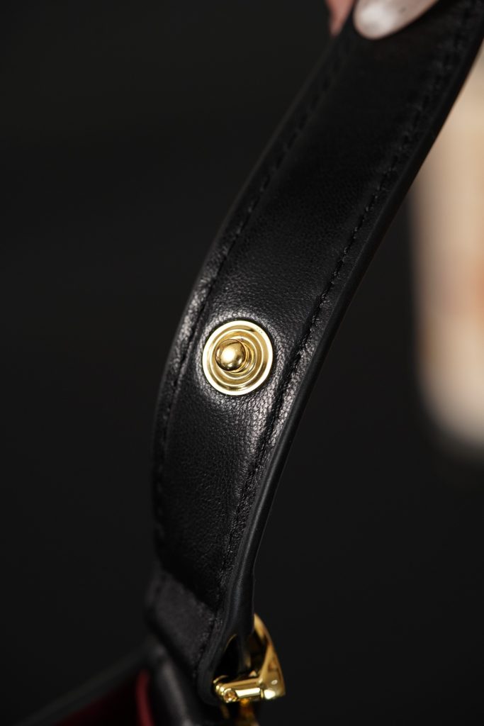 The black-and-gold contrast is elevated by a refined gold leather charm, adding just the right amount of festive sparkle—perfectly in tune with the Christmas atmosphere.