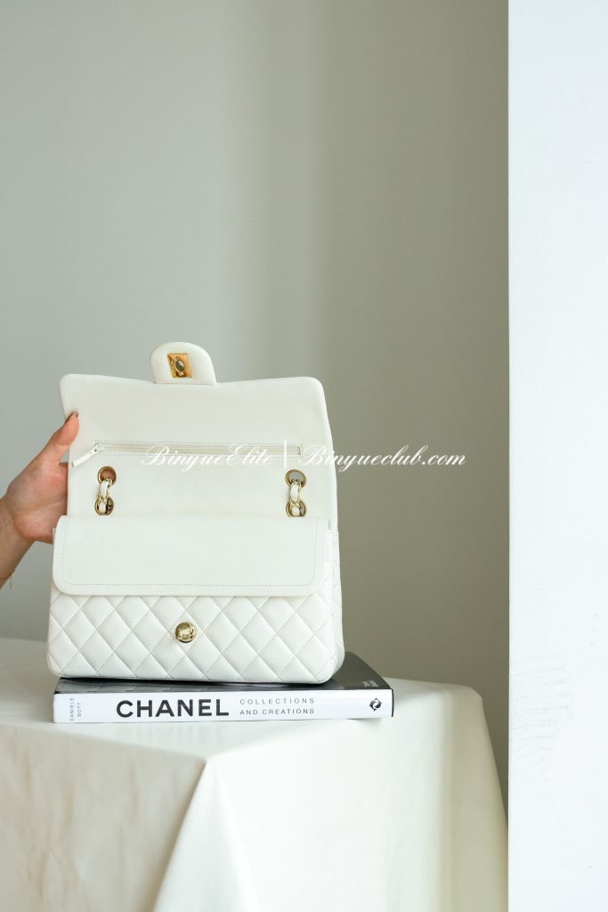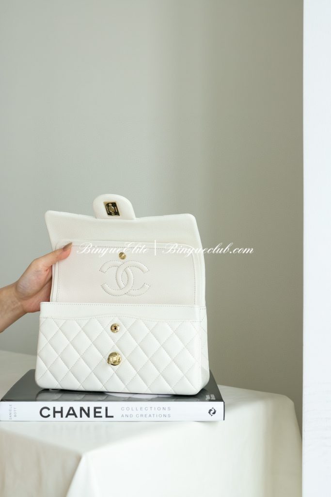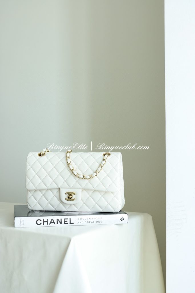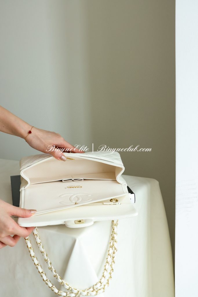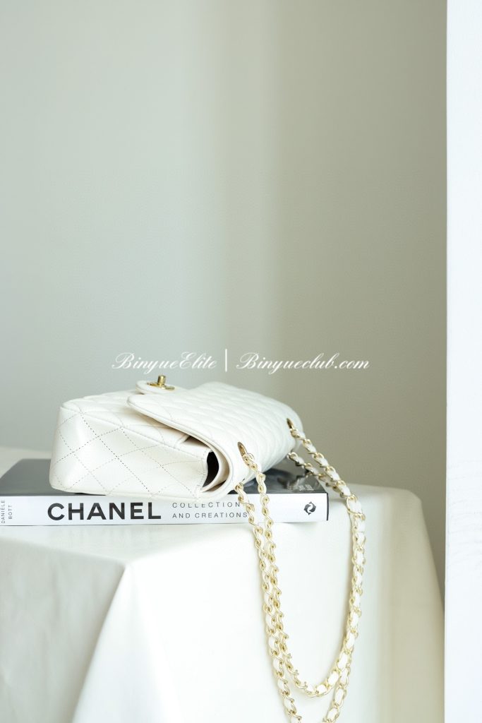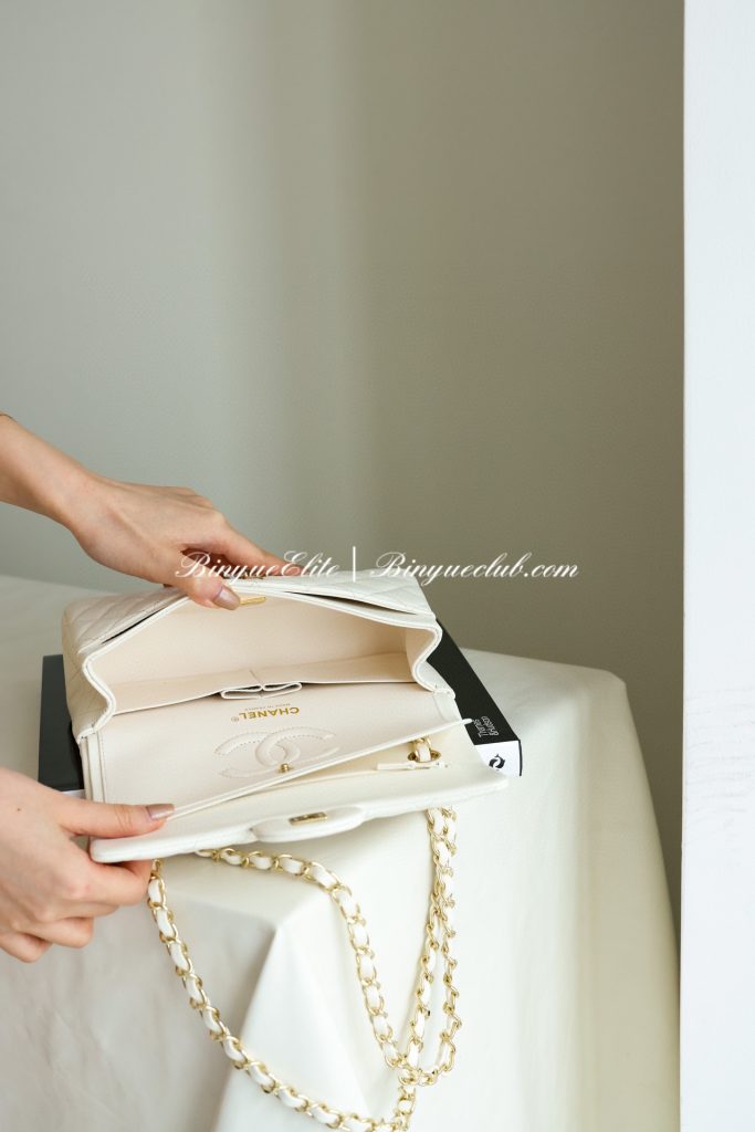 HomeBagsChanel Classic Flap in white 23/25cm lambskin BagsChanel Chanel Classic Flap in white 23/25cm lambskin August 31, 2023 338 0 FacebookTwitterPinterestWhatsApp Everyone knows that we rarely have white flaps because the original factory leather is hard to get. Now we finally have a small quantity available. Don’t miss out! Tagscrossbody bagFlapshoulderbag FacebookTwitterPinterestWhatsApp Previous articleChanel๏ฝNewest version of the 23 Golden Ball CF ๏ผwhite and pink๏ผNext articleChanel๐Classic Flap ๏ฝOriginal leather Binyuehttp://www.binyueclub.com RELATED ARTICLES Bags ๐๐ก๐๐ง๐๐ฅ 25K WOC in Black Bags Chanel 19 Bag โ Small, Black & Silver Bags Chanel 19 Bag โ Medium, Black & Gold Subscribe Login Notify of new follow-up comments new replies to my comments Label {} [+] Name* Email* Website Label {} [+] Name* Email* Website 0 Comments Oldest Newest Most Voted Inline Feedbacks View all comments Popular posts Belt&Accessories Binyue - December 14, 2025 ๐๐จ๐ฎ๐ข๐ฌ ๐๐ฎ๐ข๐ญ๐ญ๐จ๐ง โGradient Jacquard Ring Cashmereโ Scarf โ Blue Belt&Accessories December 14, 2025 ๐๐ก๐๐ง๐๐ฅ 25K WOC in Black Bags December 14, 2025 Chanel 19 Bag โ Small, Black & Silver Bags December 5, 2025 Chanel 19 Bag โ Medium, Black & Gold Bags December 5, 2025 Popular categoriesBags785Chanel303Outfit of the Day139Dior113Hermes108LV104 My favoritesBelt&AccessoriesBinyue - December 14, 20250Belt&Accessories๐๐จ๐ฎ๐ข๐ฌ ๐๐ฎ๐ข๐ญ๐ญ๐จ๐ง โGradient Jacquard Ring Cashmereโ Scarf โ BlueBinyue - December 14, 20250Bags๐๐ก๐๐ง๐๐ฅ 25K WOC in BlackBinyue - December 14, 20250BagsChanel 19 Bag โ Small, Black & SilverBinyue - December 5, 20250BagsChanel 19 Bag โ Medium, Black & GoldBinyue - December 5, 20250