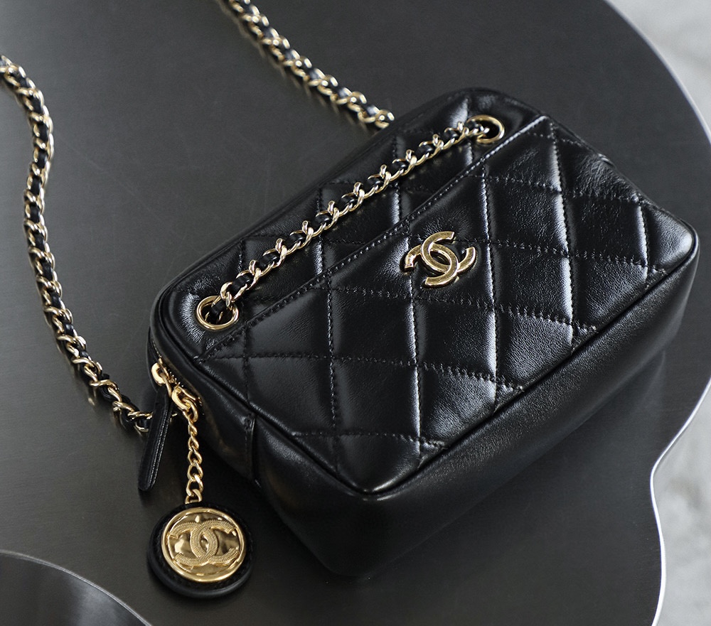 The design inspiration for the Gold Coin Camera Bag comes from vintage cameras. Its square yet rounded contours resemble an exquisite old-fashioned camera, exuding a strong sense of retro charm. The mini size is particularly delicate and elegant, like a little lady of means!