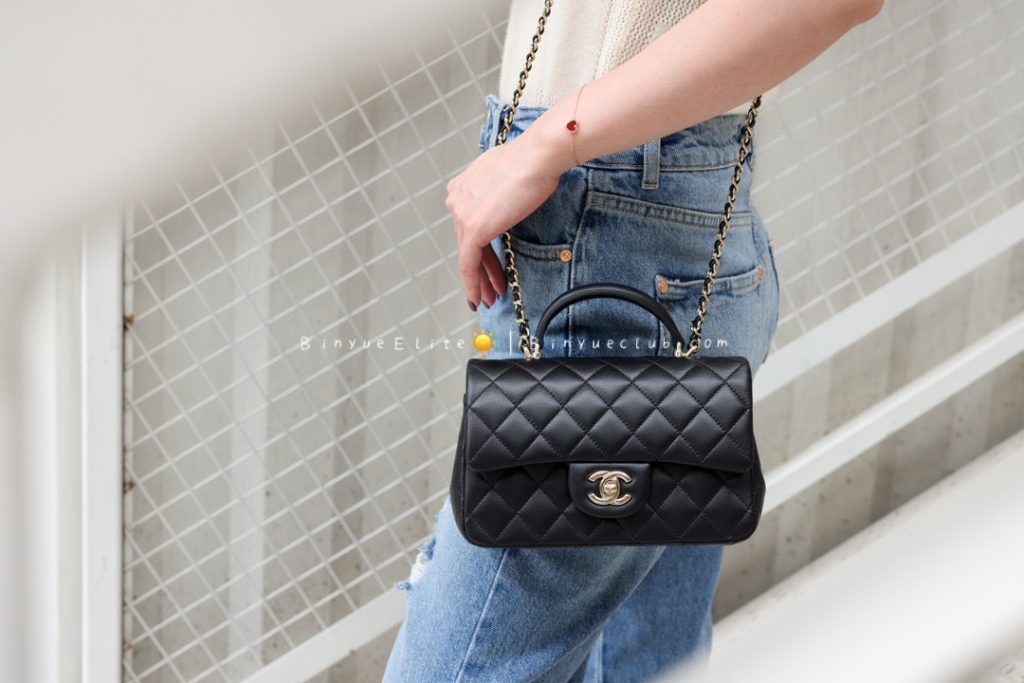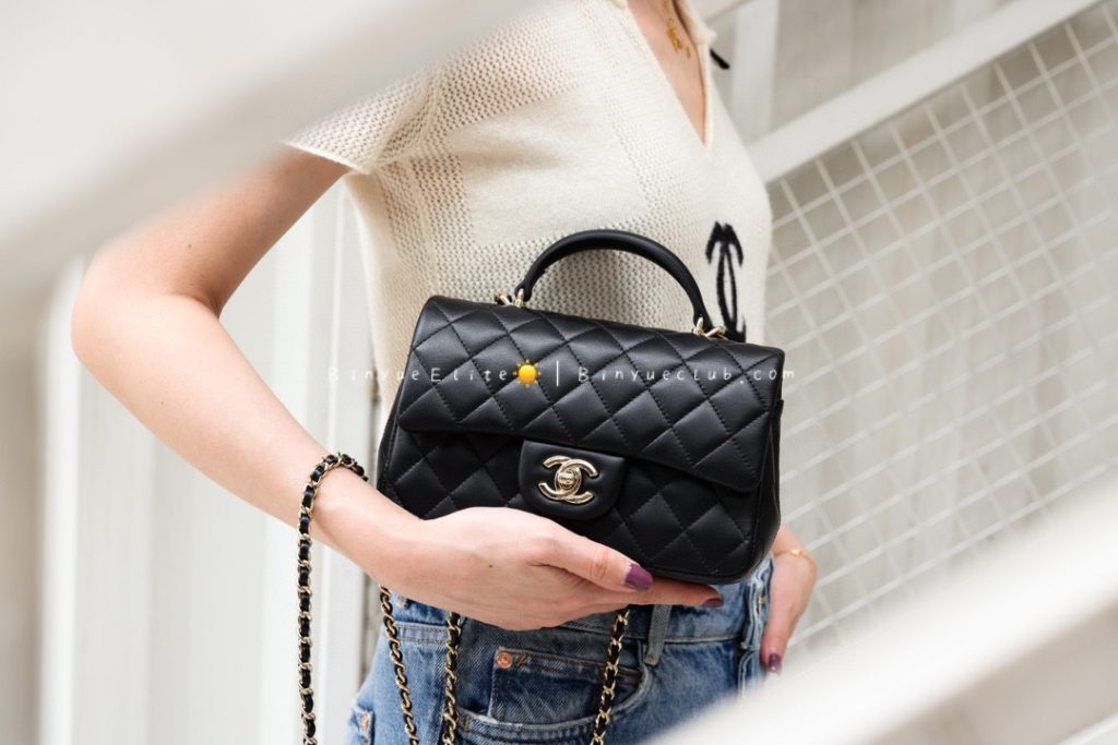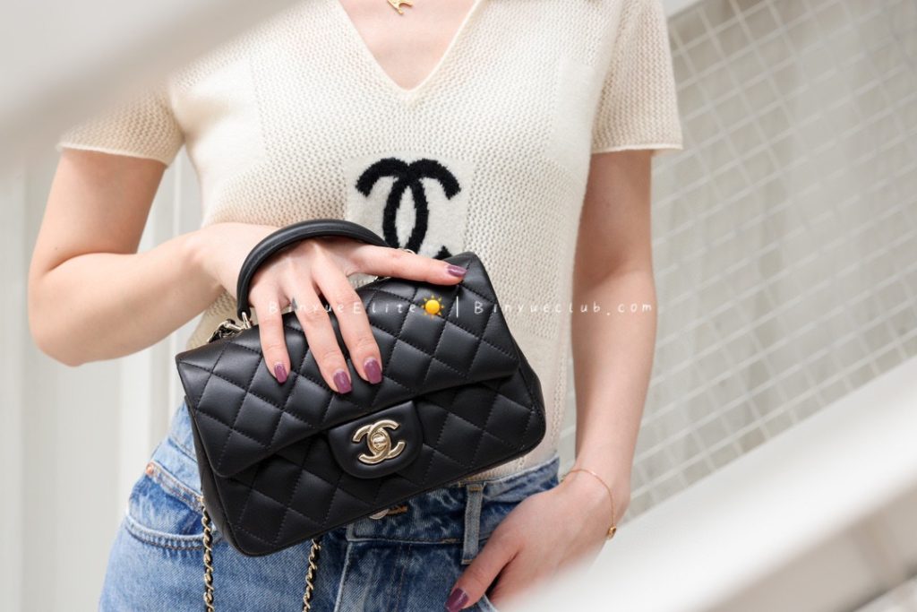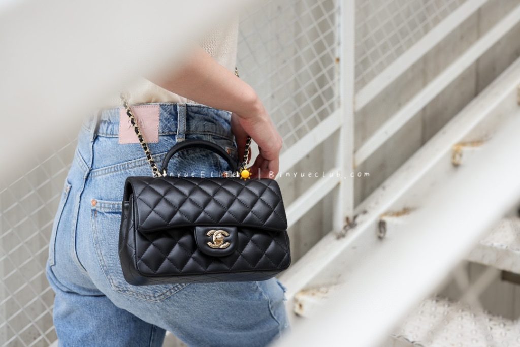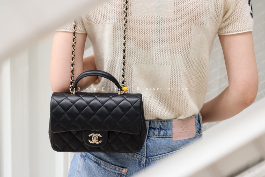 The hand-carry Mini Flap is also a classic model. Let’s talk about its superb practicality. With the addition of a handle, it becomes very convenient for crossbody, single-shoulder, and hand-carry styles, allowing for versatile and stylish combinations.