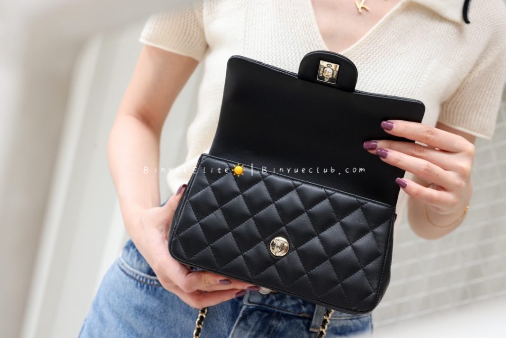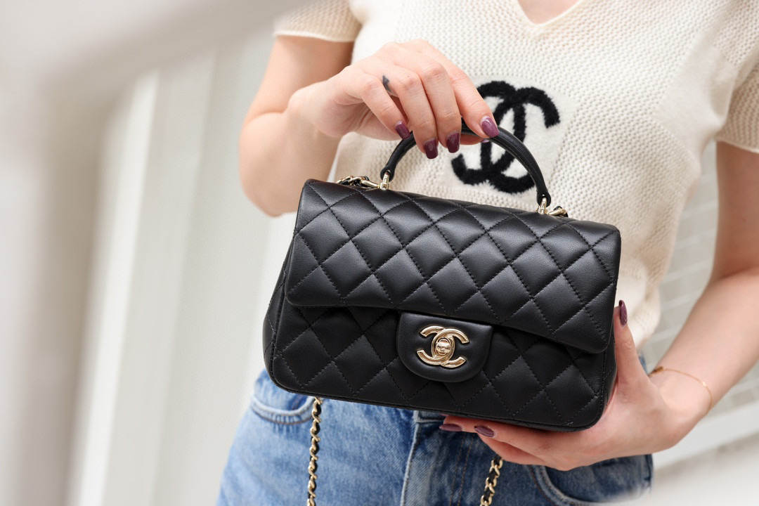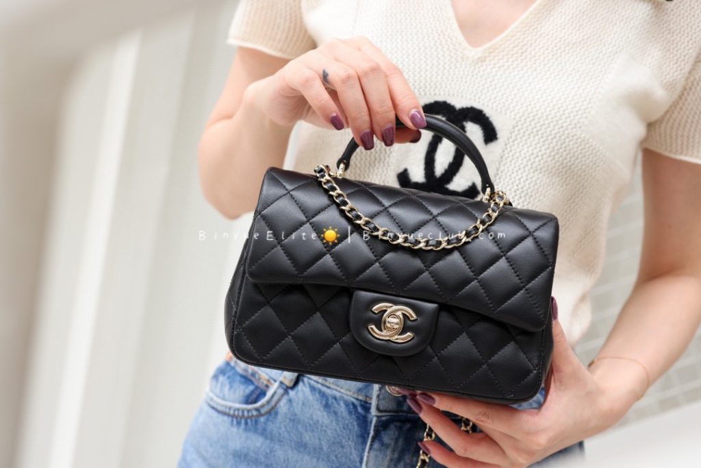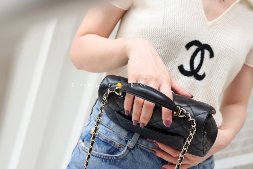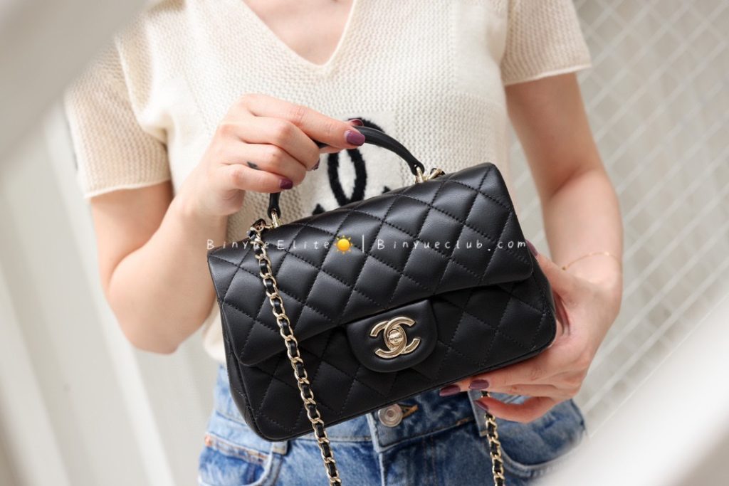 The hand-carry Mini Flap is also a classic model. Let’s talk about its superb practicality. With the addition of a handle, it becomes very convenient for crossbody, single-shoulder, and hand-carry styles, allowing for versatile and stylish combinations.