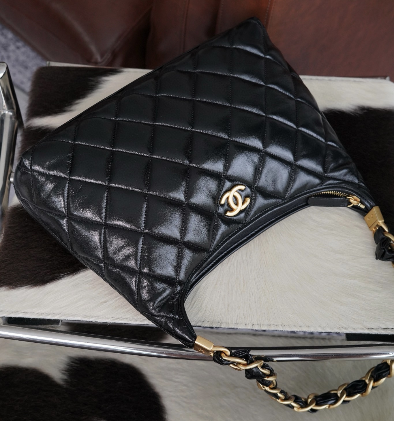 Channel 24a Hobo bag Black in 2 sizes Genuine Leather