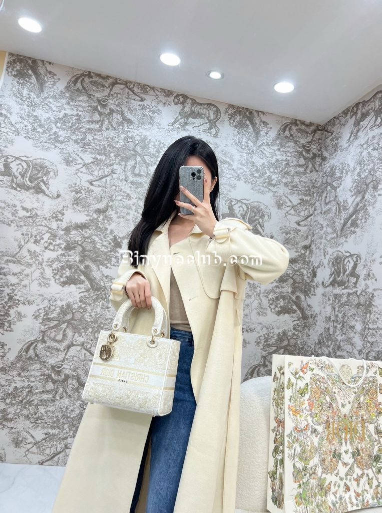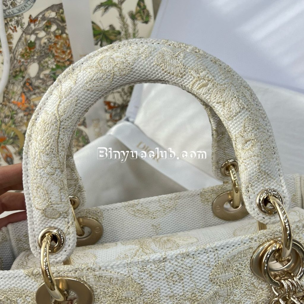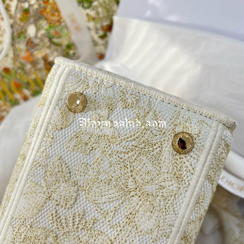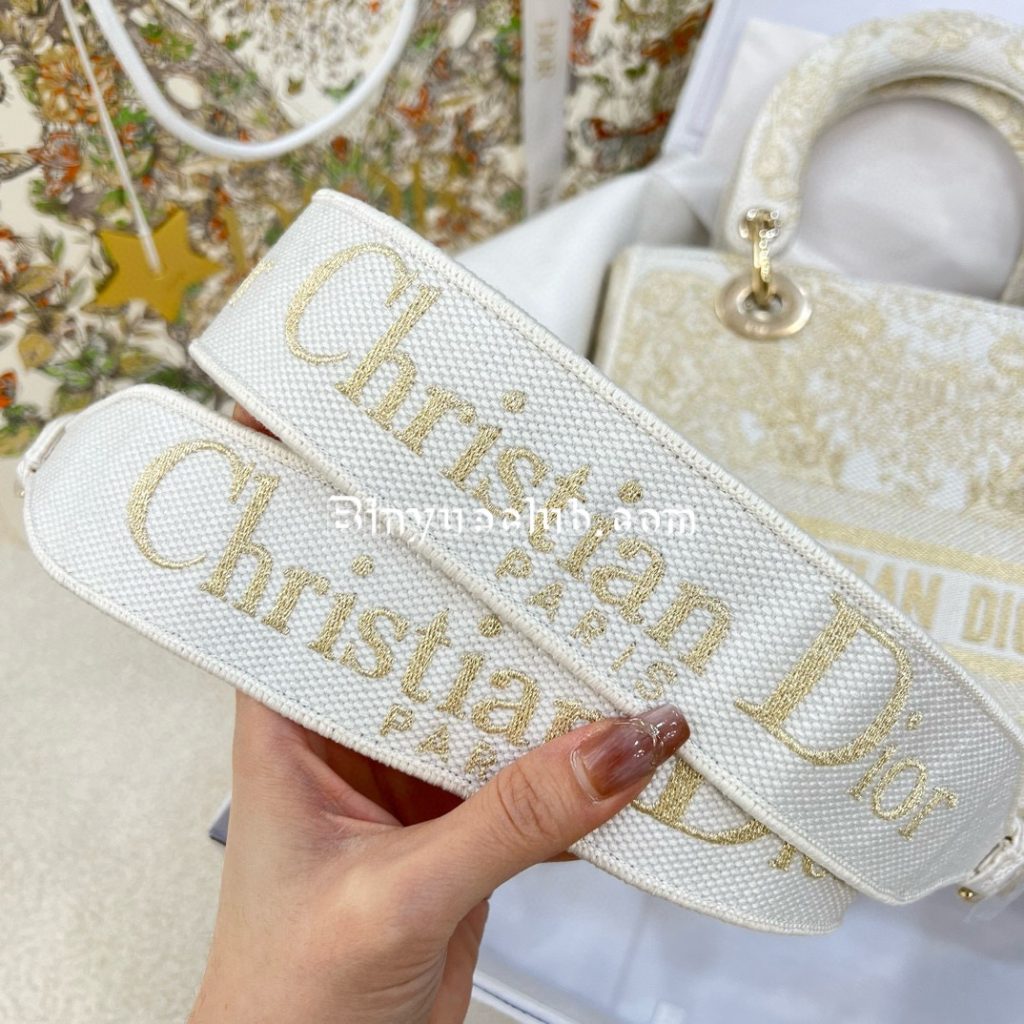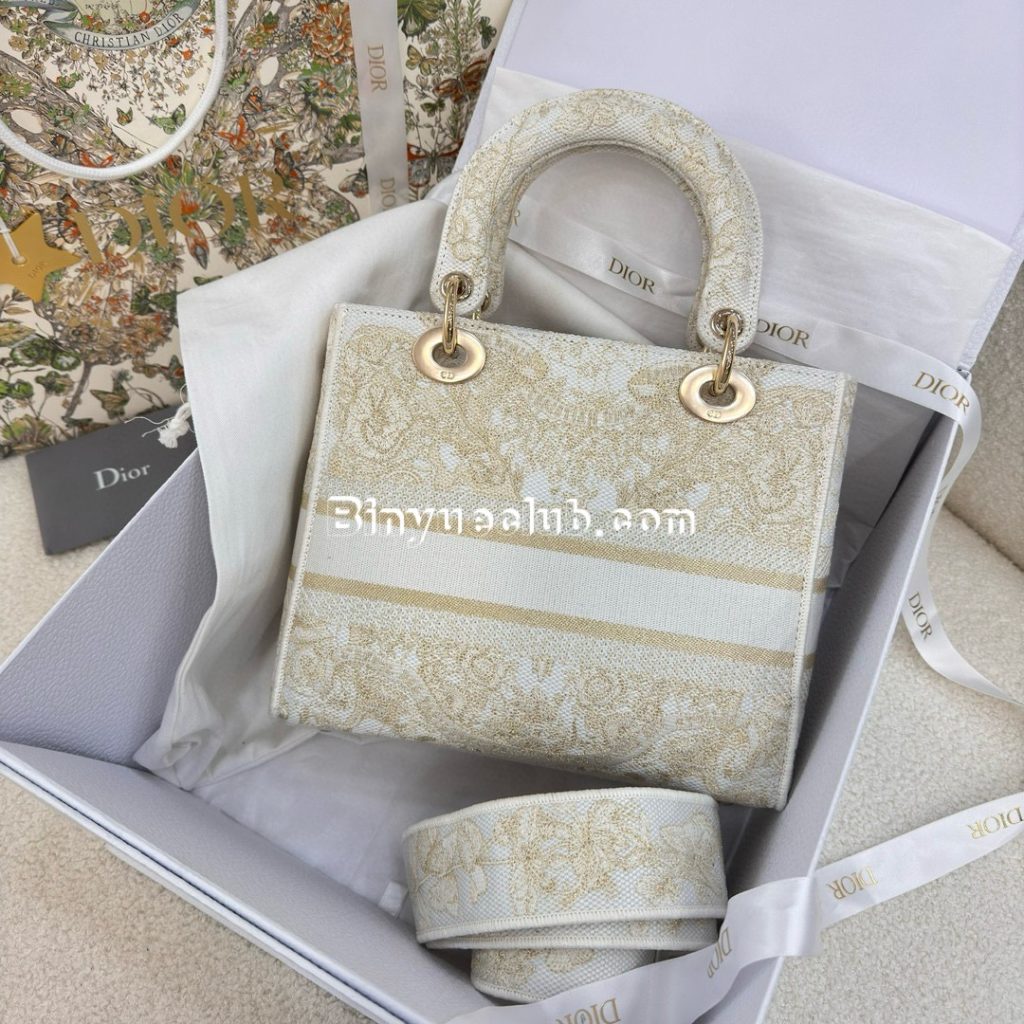 The fabric used in this Princess Diana-inspired bag is truly unique. It’s a shimmering and luxurious platinum shade that exudes warmth and richness. The warm, creamy white color beautifully complements the intricate gold thread embroidery, creating a perfect Christmas atmosphere.