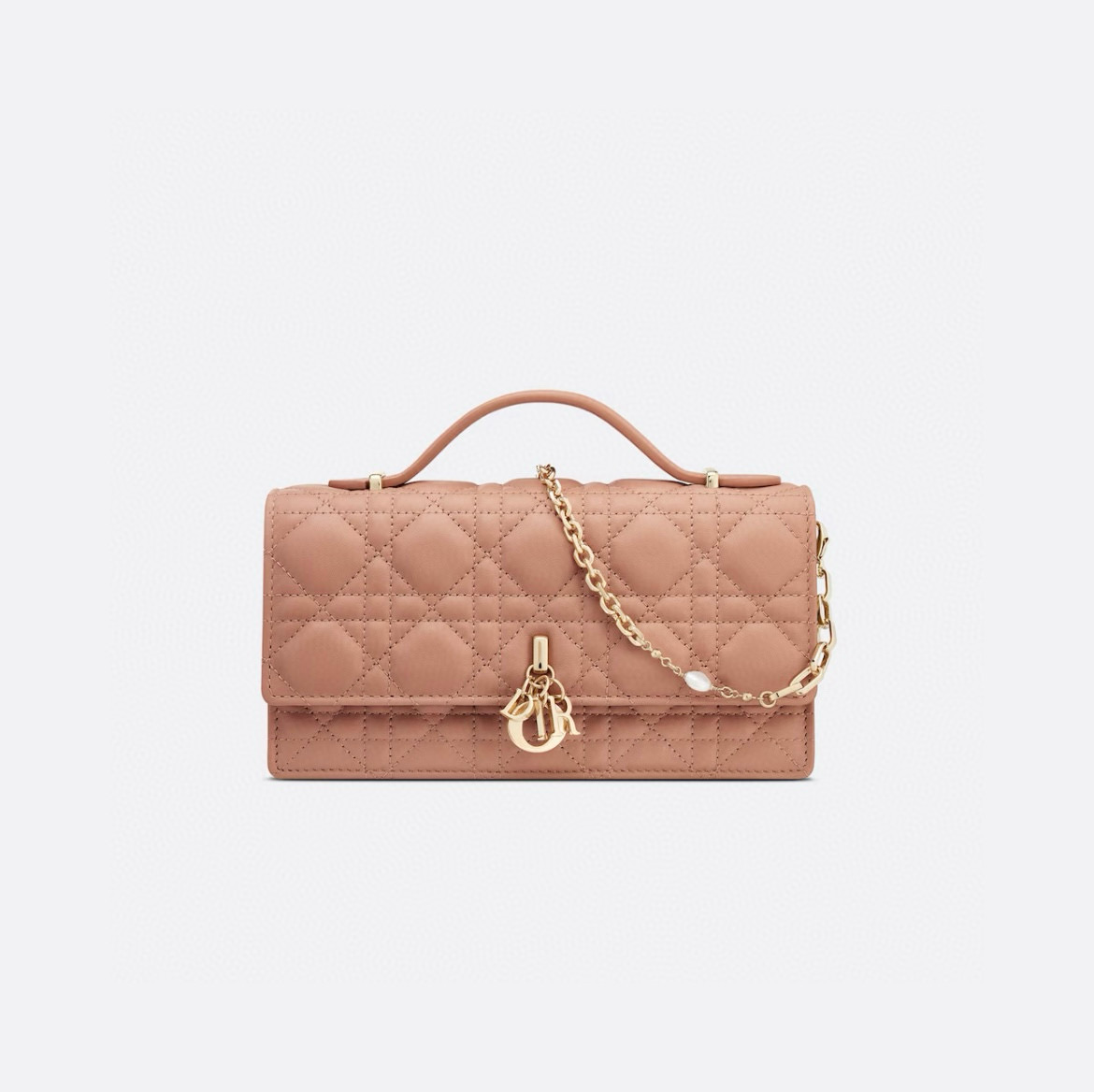 This compact and delicate bag not only boasts an exquisite exterior but also features a highly practical interior structure with multiple compartments and card slots. The detachable chain can be adorned with pearls for added elegance. The flap design paired with the ๐.๐.๐ข.๐ฅ. pendant enhances its style, making it an ideal companion for both day and evening wear.