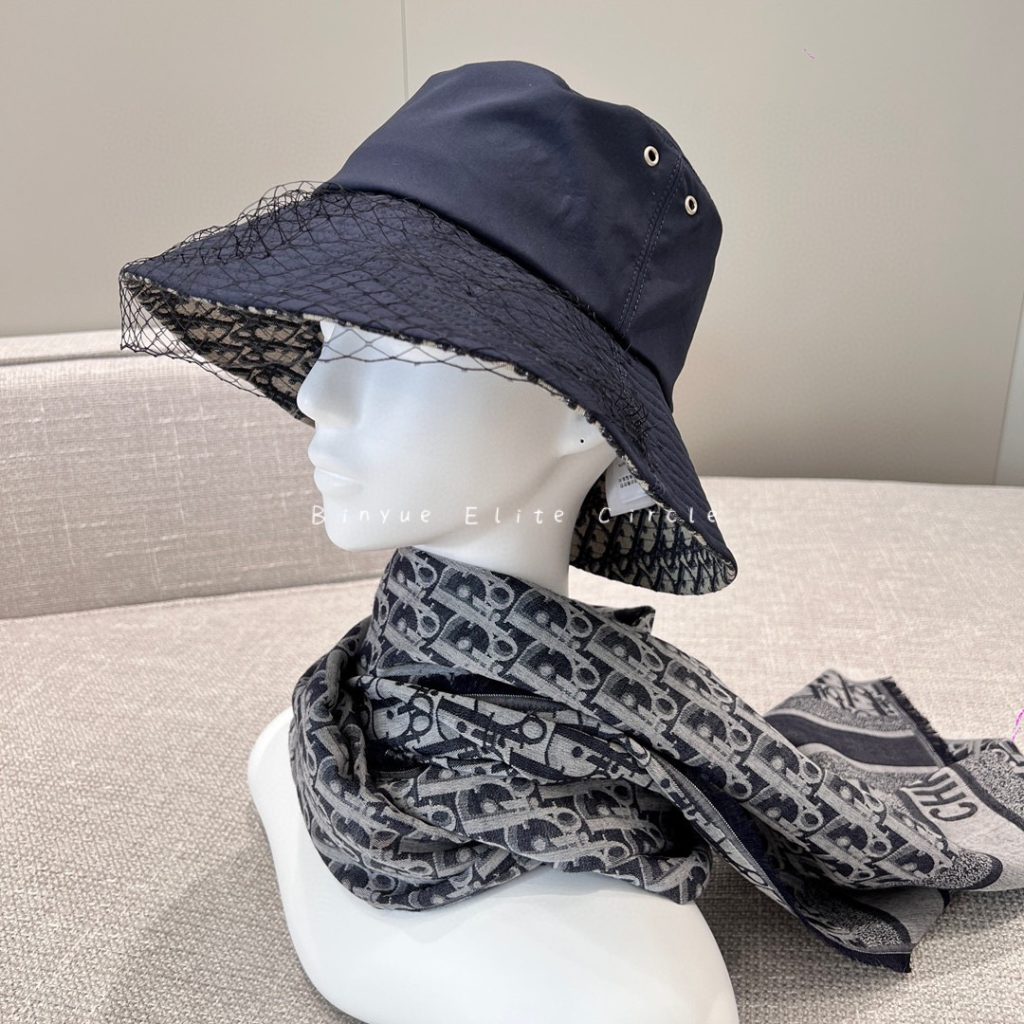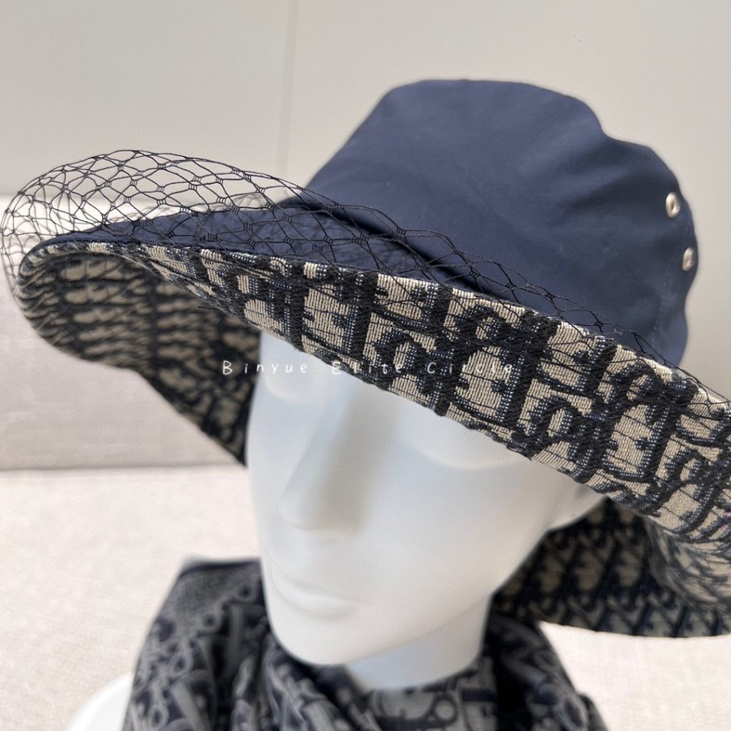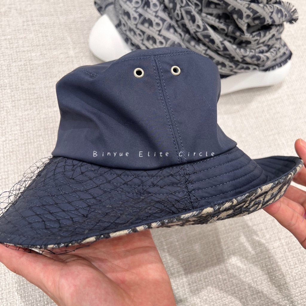 DIOR 23 New “Teddy Mesh Fisherman Hat” in navy blue