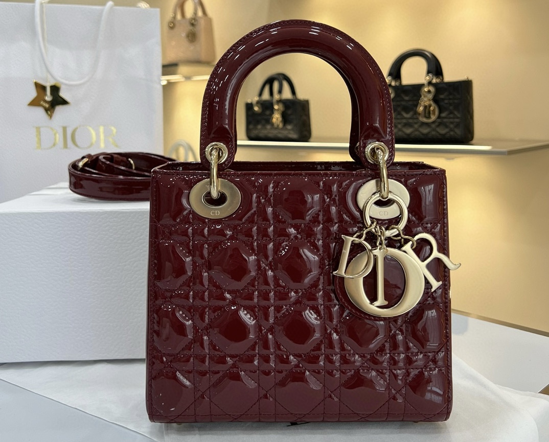 Dior Lady Small Size Burgundy/Patent Leather|upgraded version