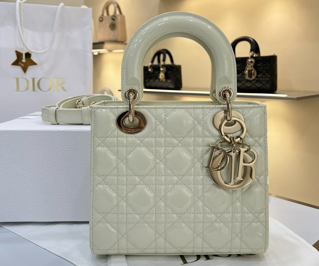 HomeBagsDior Lady Small Size cream white/Patent Leather