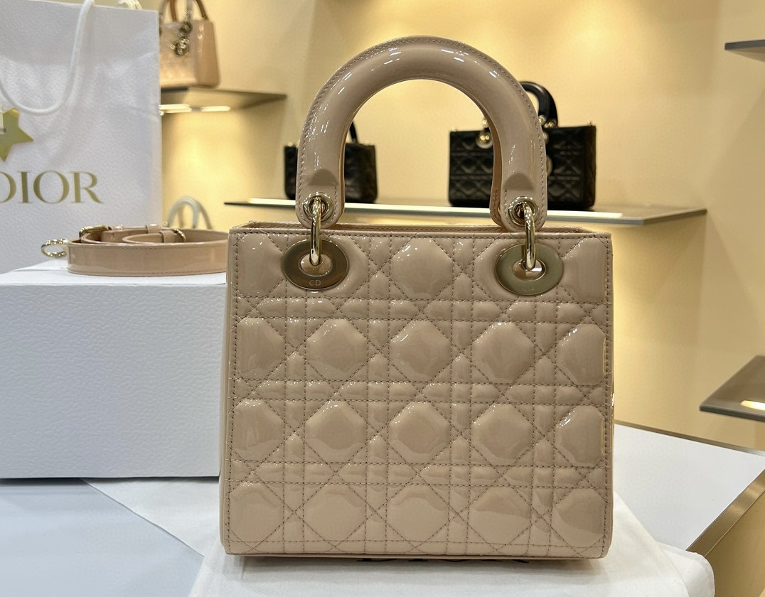 This is the upgraded version with all-around enhancements. Patent leather, known for its durability, gives the bag a firm and structured shape. It shines brilliantly under sunlight, adding a touch of glamour to any outfit. Its easy maintenance and resistance to dirt make it a practical yet stylish choice. The nude color exudes elegance and sophistication, making it a perfect accessory for any occasion.