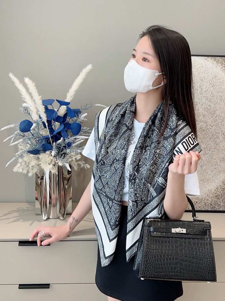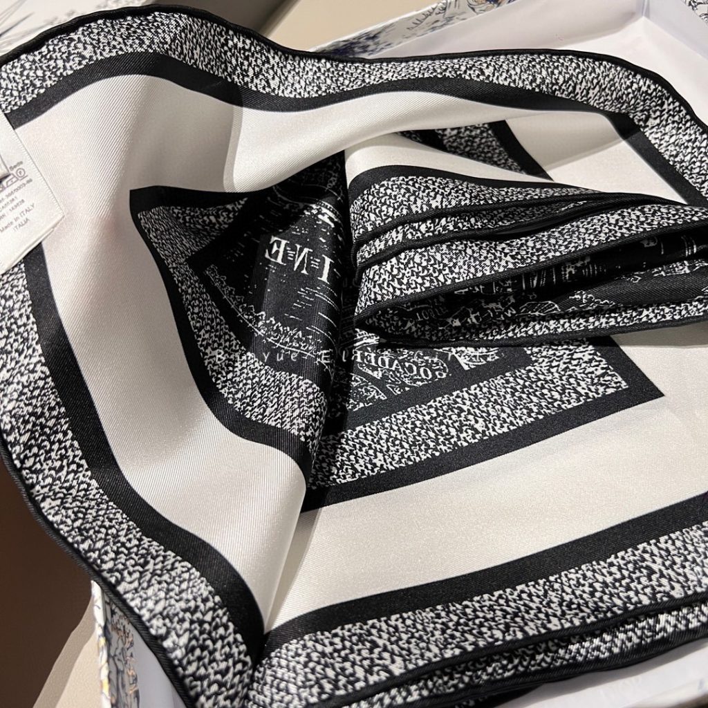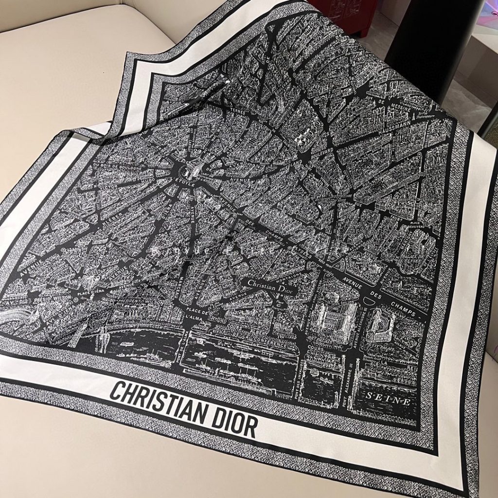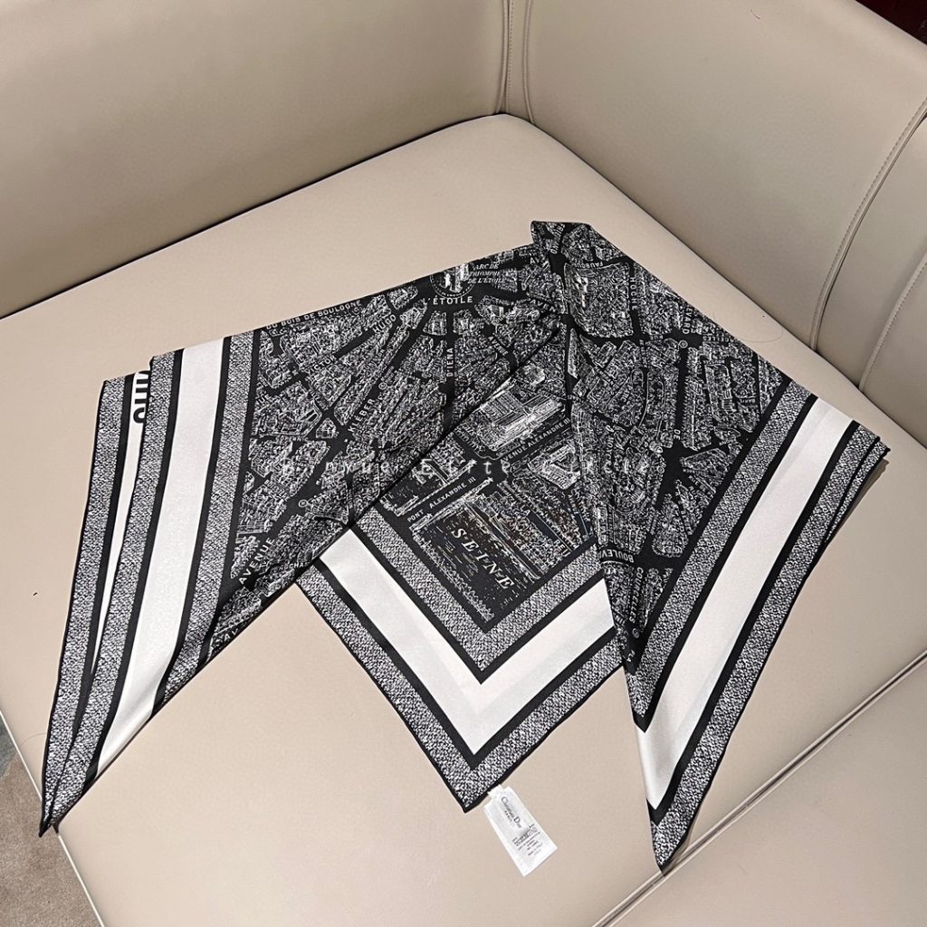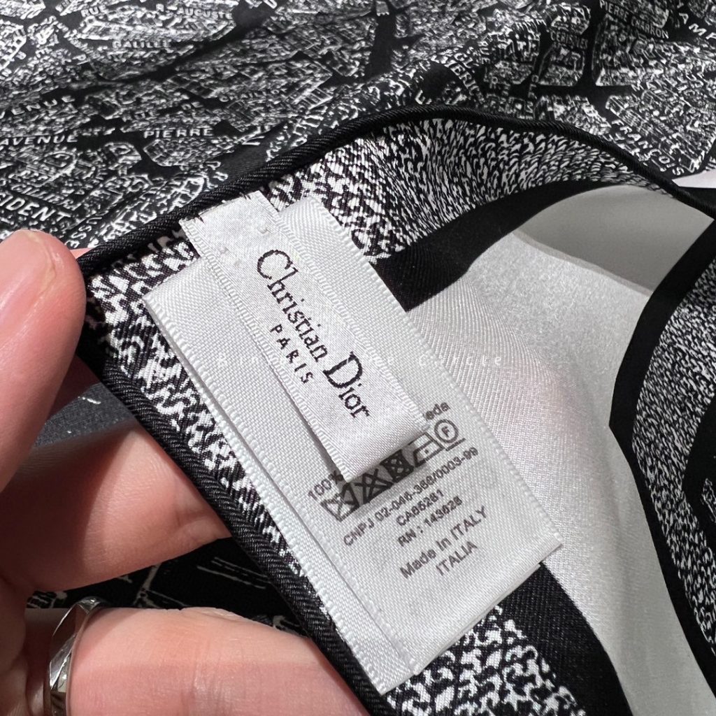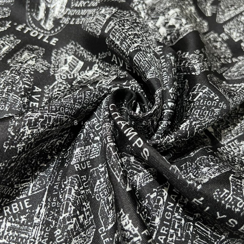Exquisitely hand-rolled edges. The scarf is adorned with this season’s classic “Plan de Paris” print, paying tribute to the iconic address of Dior on Avenue Montaigne, as if strolling along the romantic streets of Paris. The minimalist black and white color scheme adds a touch of sophistication and vintage elegance, making it a versatile and elegant accessory .