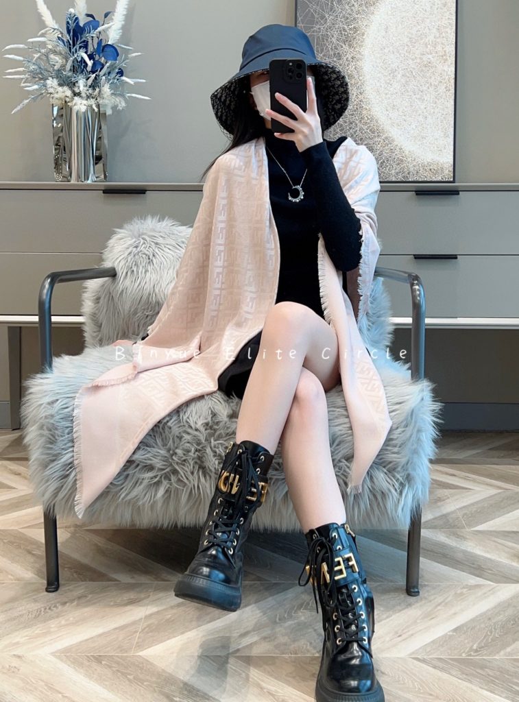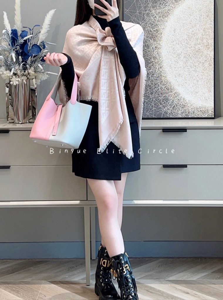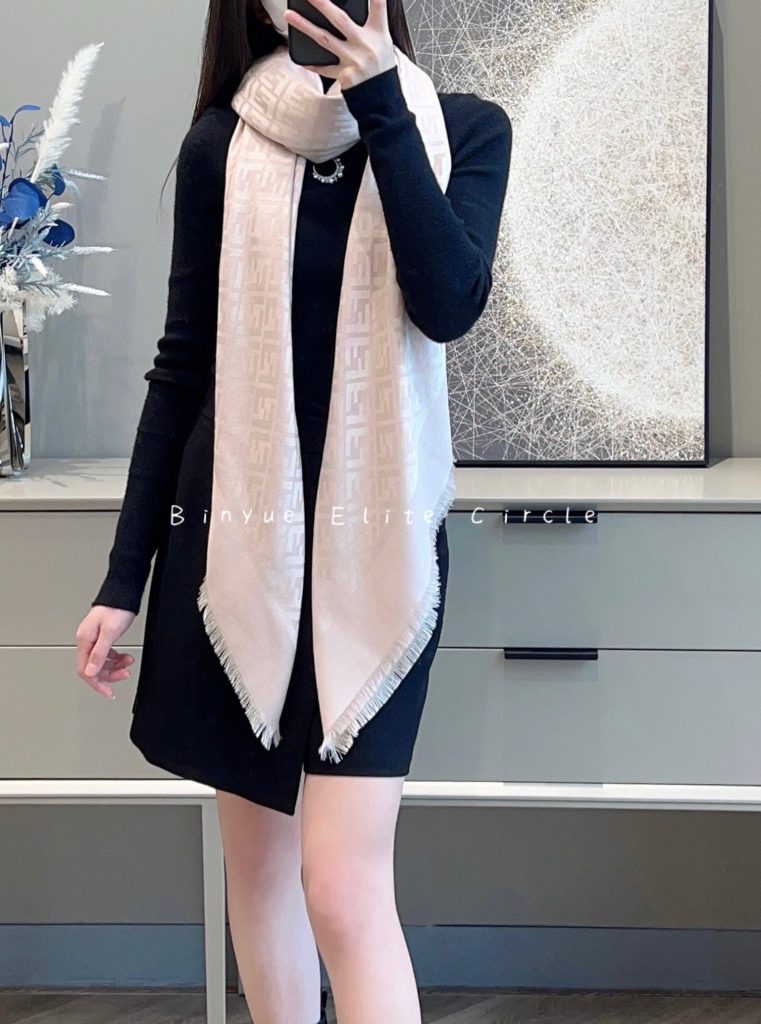 The double F jacquard shawl is an elegant and versatile piece, showcasing a luxurious pearl-like texture on both sides. The fabric is soft and of moderate thickness, making it a must-have for outings! It adds layers and depth to the overall outfit, offering a variety of styling options. Highly recommended as an essential item for early autumn ๐