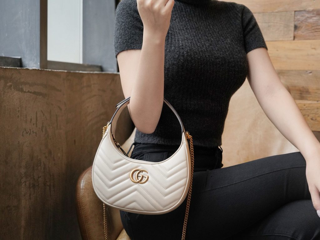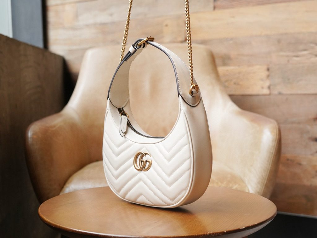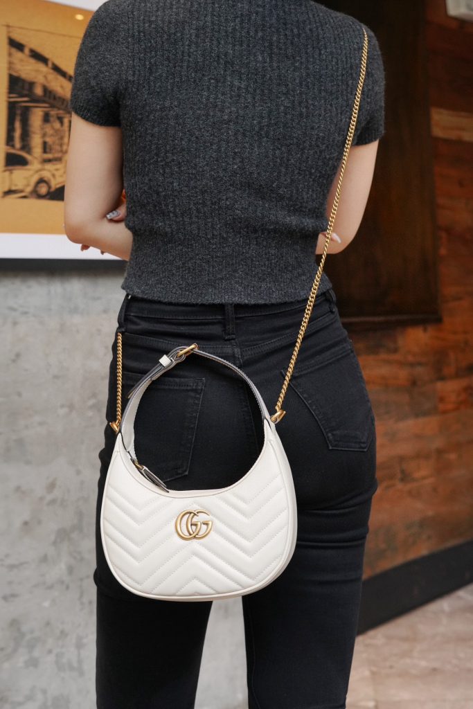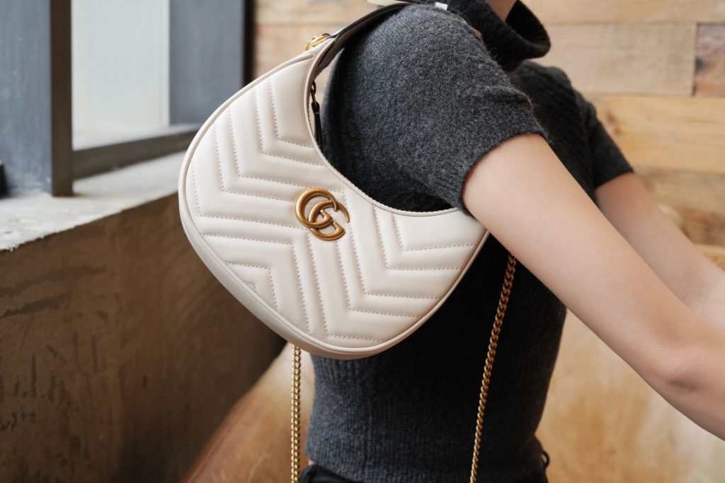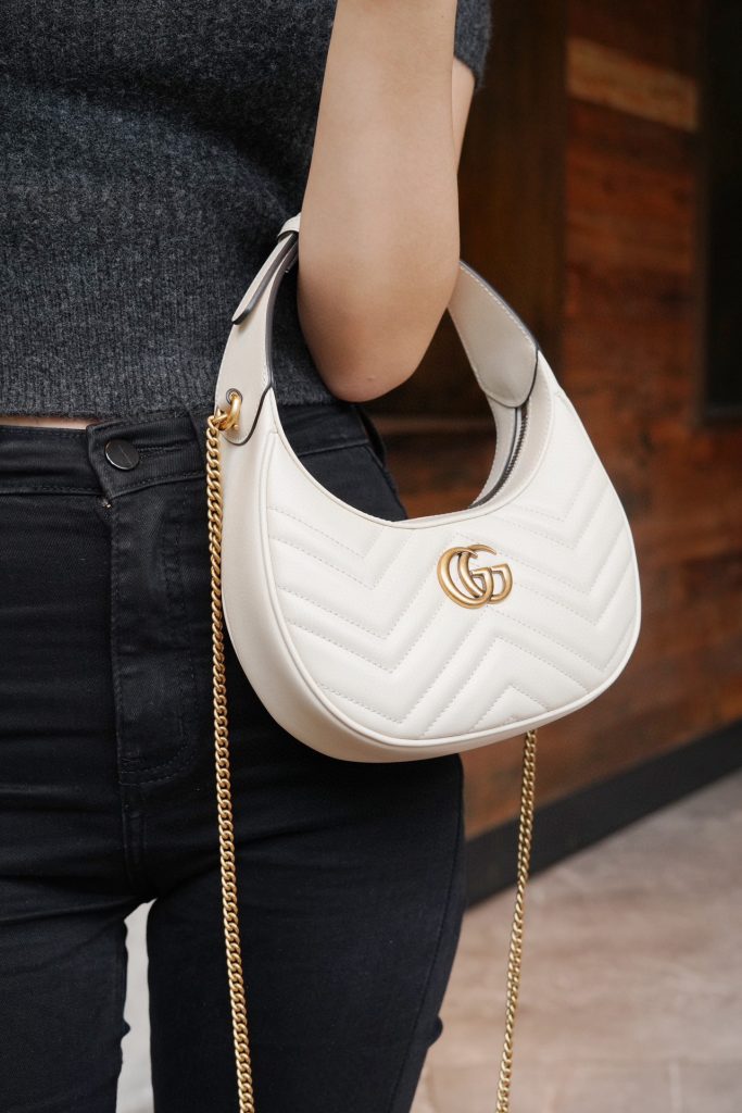 HomeBagsGG Marmont Series Crescent-shaped Handbag in White