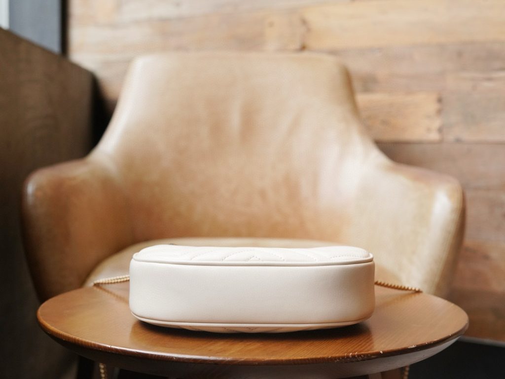 This mini handbag features a crescent-shaped silhouette and rich black leather, exuding a strong retro style. Each collection of the brand is dedicated to exploring different eras and periods, blending vintage elements with classic or fashionable details to present a refreshing design beyond the limitations of time and space. The GG Marmont series embodies the brand’s deep infatuation with its past history, and this compact accessory is no exception.