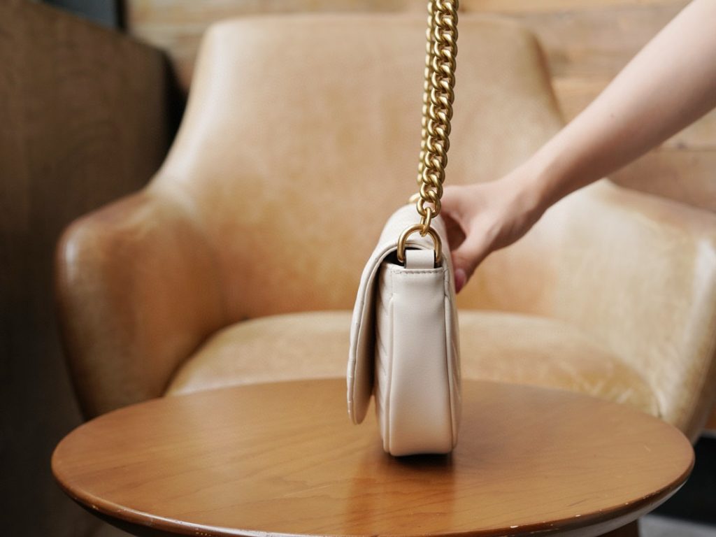 GG Marmont Series Quilted Chain Mini Bag in white