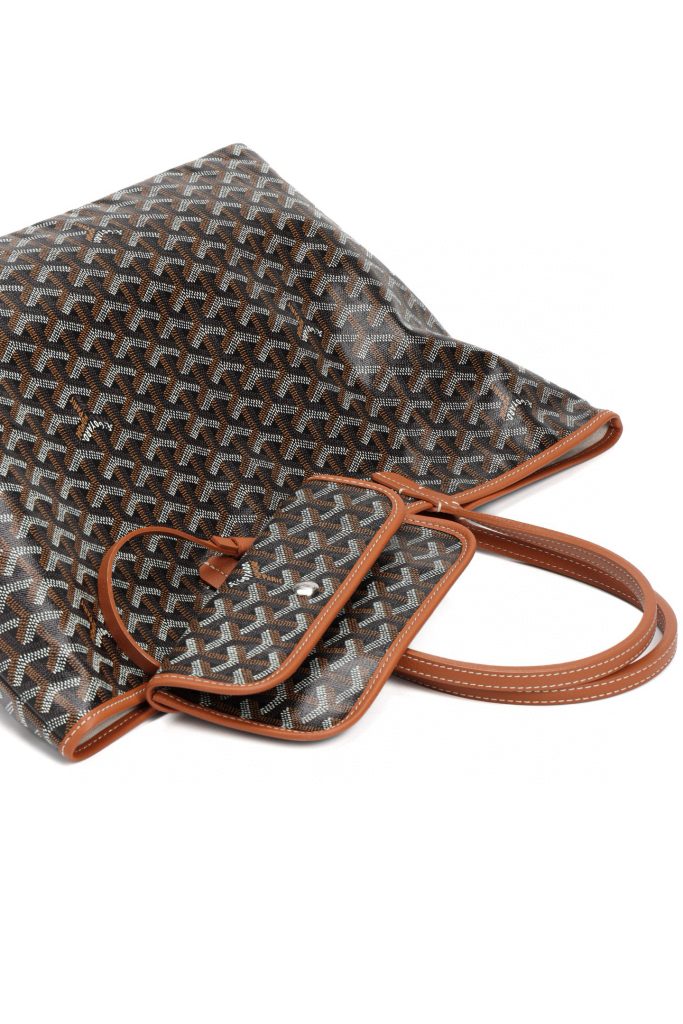 The Goyard tote shopping bag in the small size is just right. It can hold “the whole world” without looking too bulky. The bag is lightweight, durable, and waterproof. It is highly practical! The single shoulder strap gives the bag a clean and crisp look, and it is comfortable to wear without digging into your shoulder.