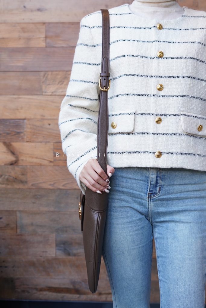The Gucci Cosmogonie Collection made its debut at the historic Montecatini Castle in Italy. The fashion show showcased aesthetic elements from different eras and geographical locations, connecting the past with the present. Among the new items presented on the runway is this exquisite medium-sized crescent-shaped shoulder bag. Drawing inspiration from the brand’s archival elements, it is crafted from soft leather material and adorned with the iconic Double G logo that first appeared in the 1970s.