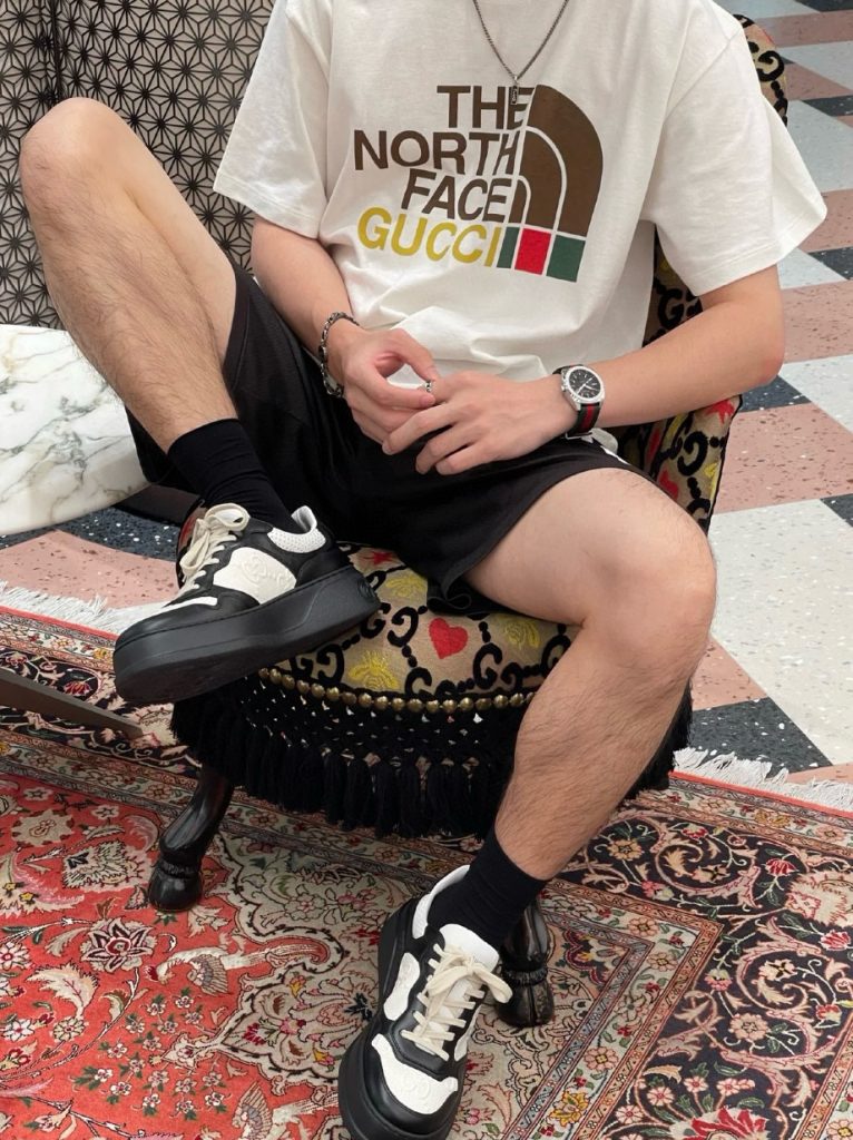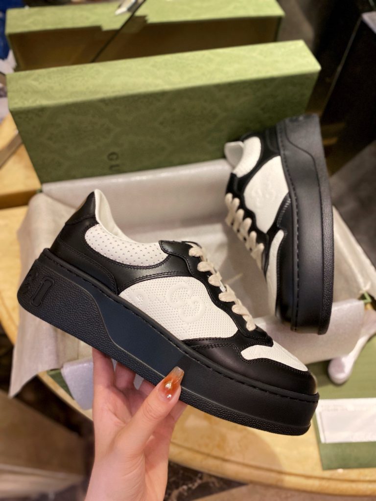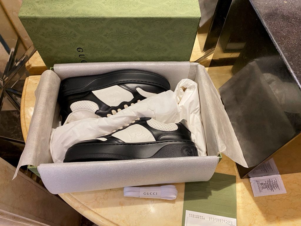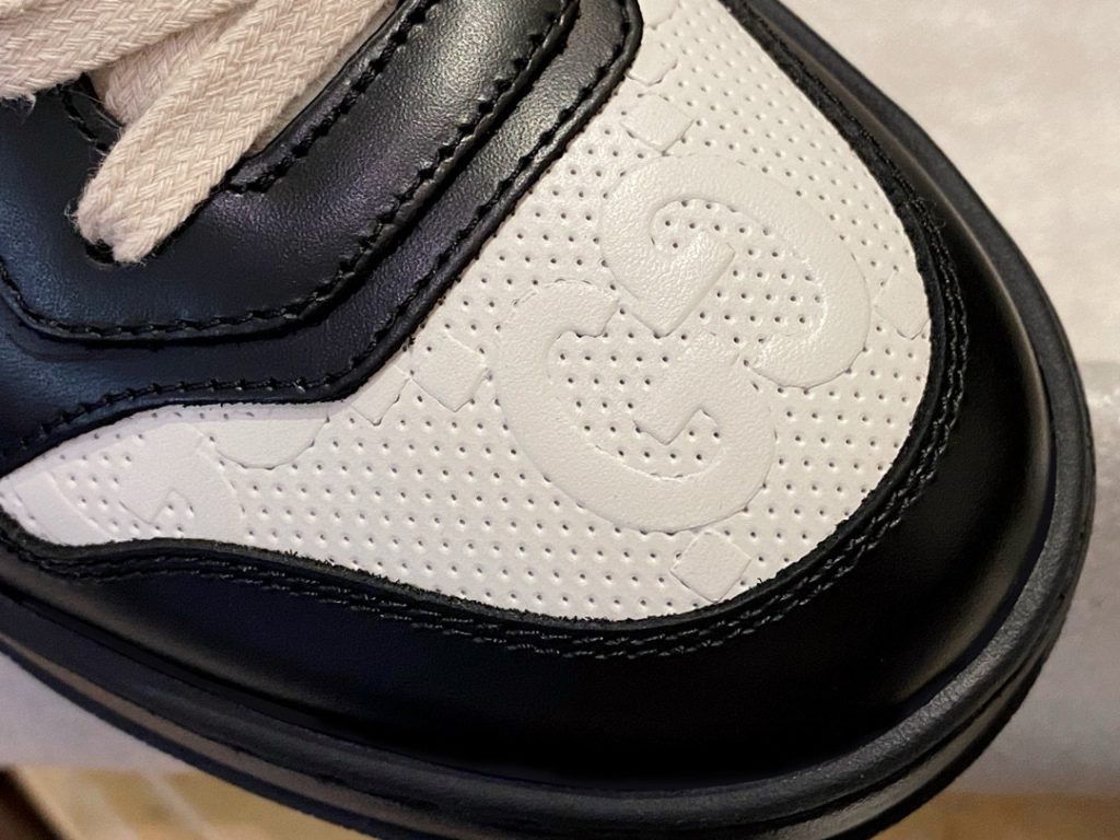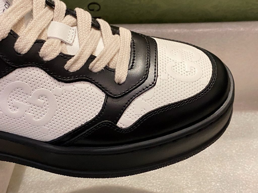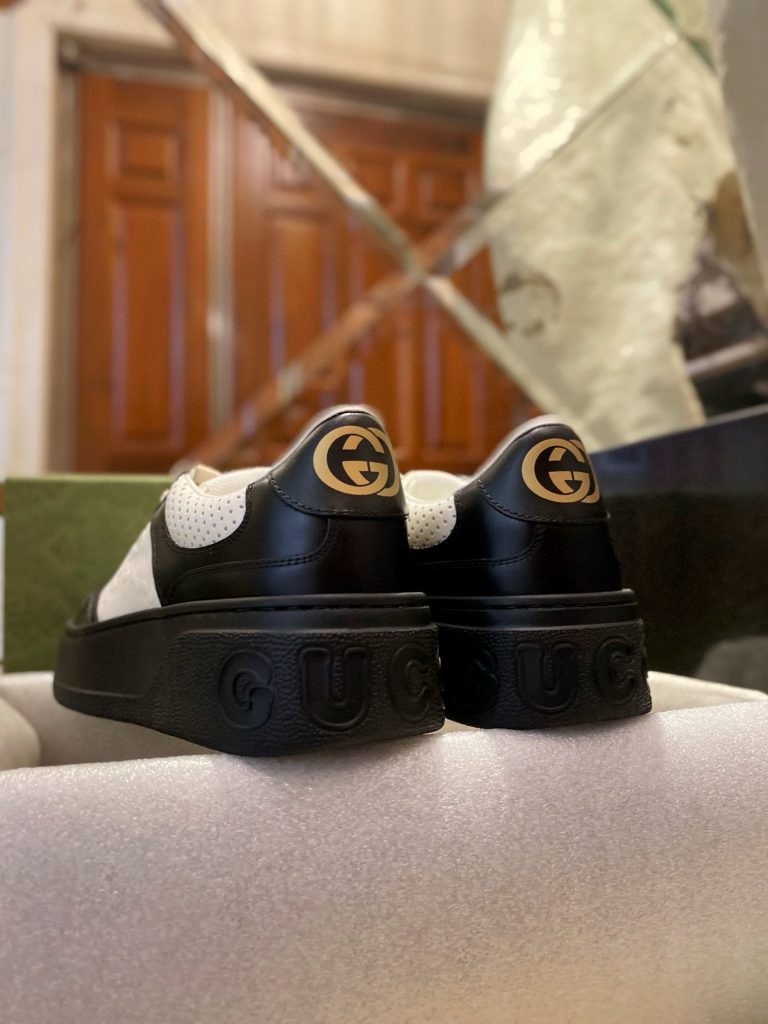 The beige shoelaces and the golden logo on the heel are very harmonious and attractive.