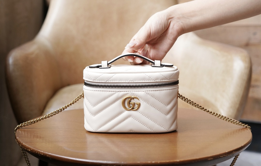 This GG Marmont series mini handbag features a full zip-around design with a top handle. Its rounded shape is adorned with the iconic white stitched V-shaped leather and double G details of the series. It also comes with a detachable chain strap, suitable for styling with various looks.