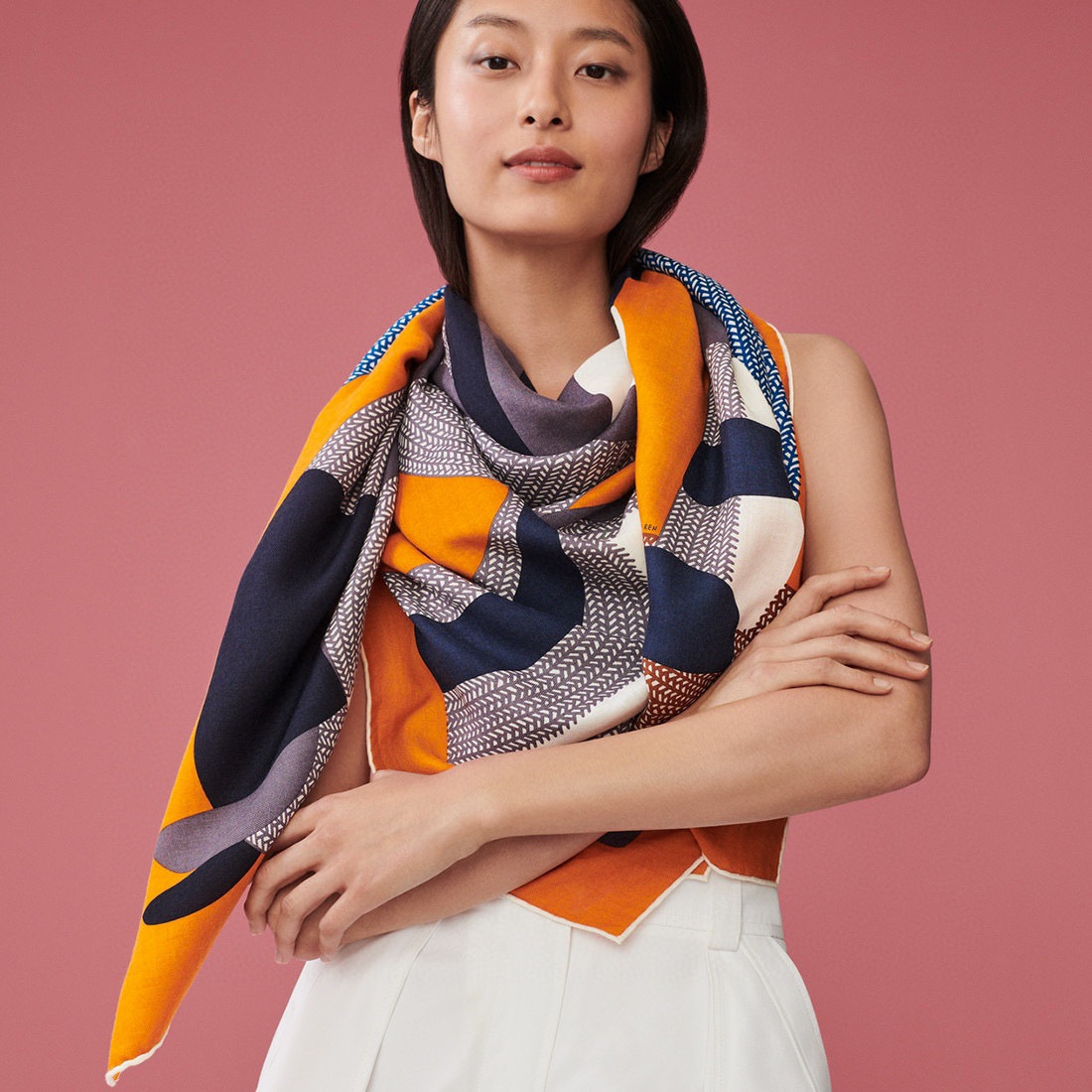 Size: 140x140cm, 70% Cashmere, 30% Mulberry Silk, Hand-rolled edges