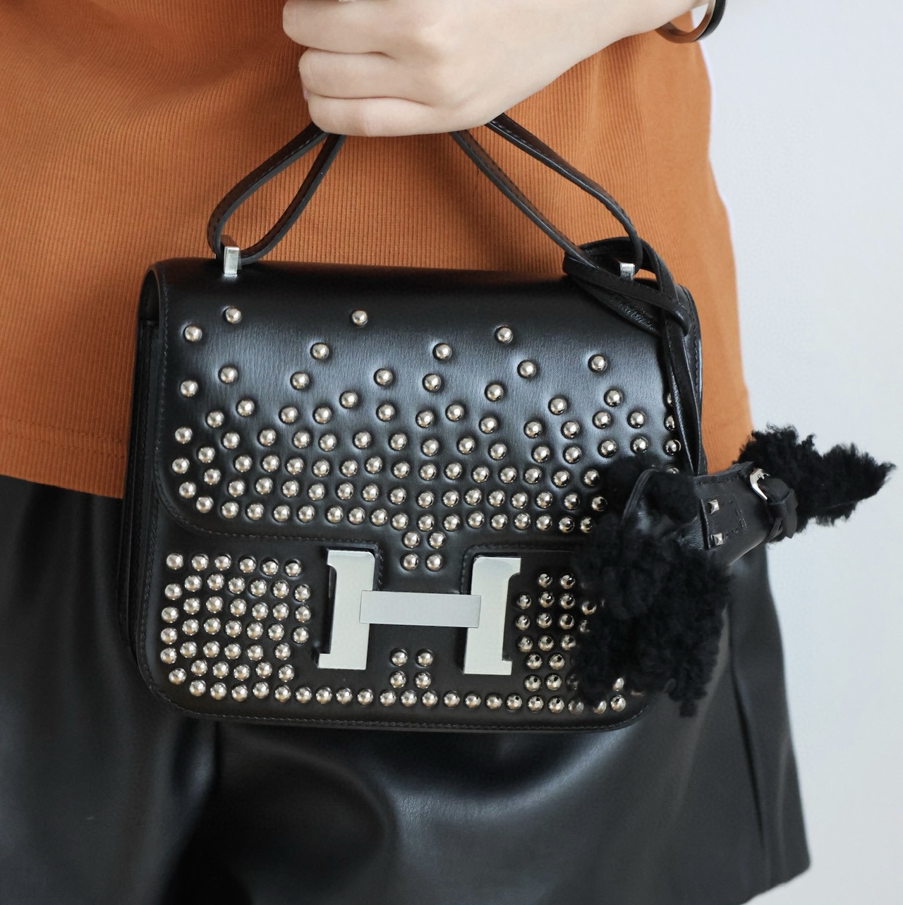 This limited edition Constance is just too handsome! The pure silver studs embedded in the black Box calf leather are like stars scattered in the night sky ๐ Each one is meticulously handcrafted by professional silversmiths, infusing the bag with dazzling brilliance.