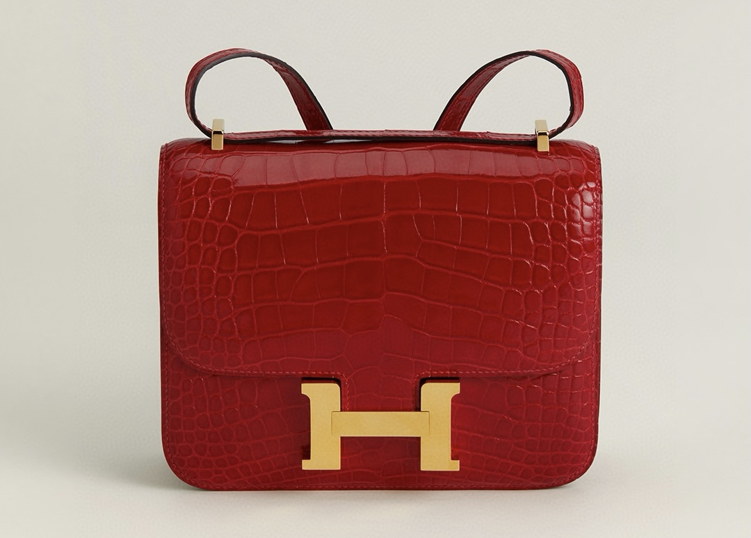 Elevate your style with the Hermès Constance-19 bag in Braise color with a gold buckle. Crafted from luxurious bright American alligator leather, this bag exudes sophistication and elegance. The compact size makes it perfect for both day and evening wear, while the bold color adds a pop of personality to any outfit. With its iconic design and exquisite craftsmanship, the Constance-19 is a timeless accessory that will elevate any look. Make a statement with the Hermès Constance-19 bag and add a touch of luxury to your wardrobe.
