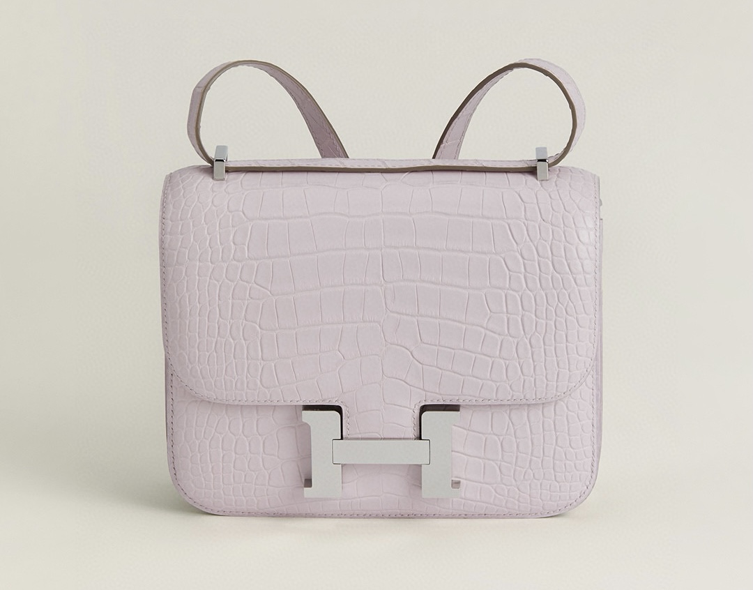 Discover elegance in every detail with the Hermès Mauve Pale Constance 19 Bag. Crafted from exquisite fog-faced alligator leather, this bag exudes luxury and sophistication. The soft mauve pale color adds a touch of femininity, while the silver buckle adds a hint of glamour. Perfect for any occasion, this bag is sure to turn heads and elevate your style to new heights. Experience the timeless beauty and unmatched quality of Hermès with the Constance 19 Bag in Mauve Pale.
