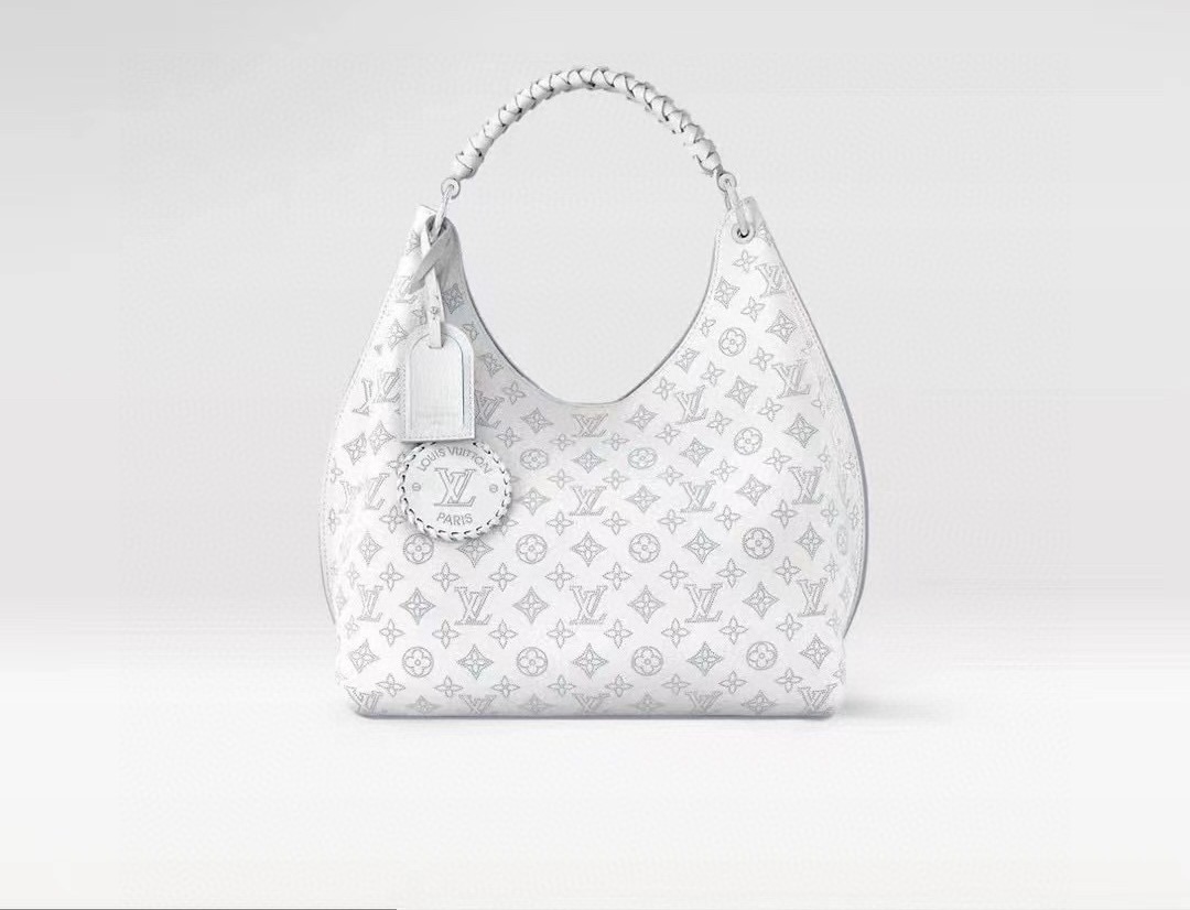 LV Carmel Mahina Taurillon crafted from calfskin leather, featuring a fashionable silhouette with a youthful vibe. The all-leather perforated woven wristlet double tag women’s shoulder bag,
