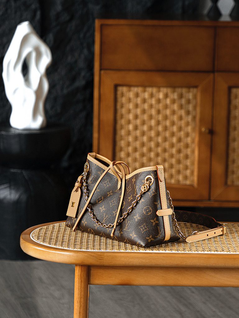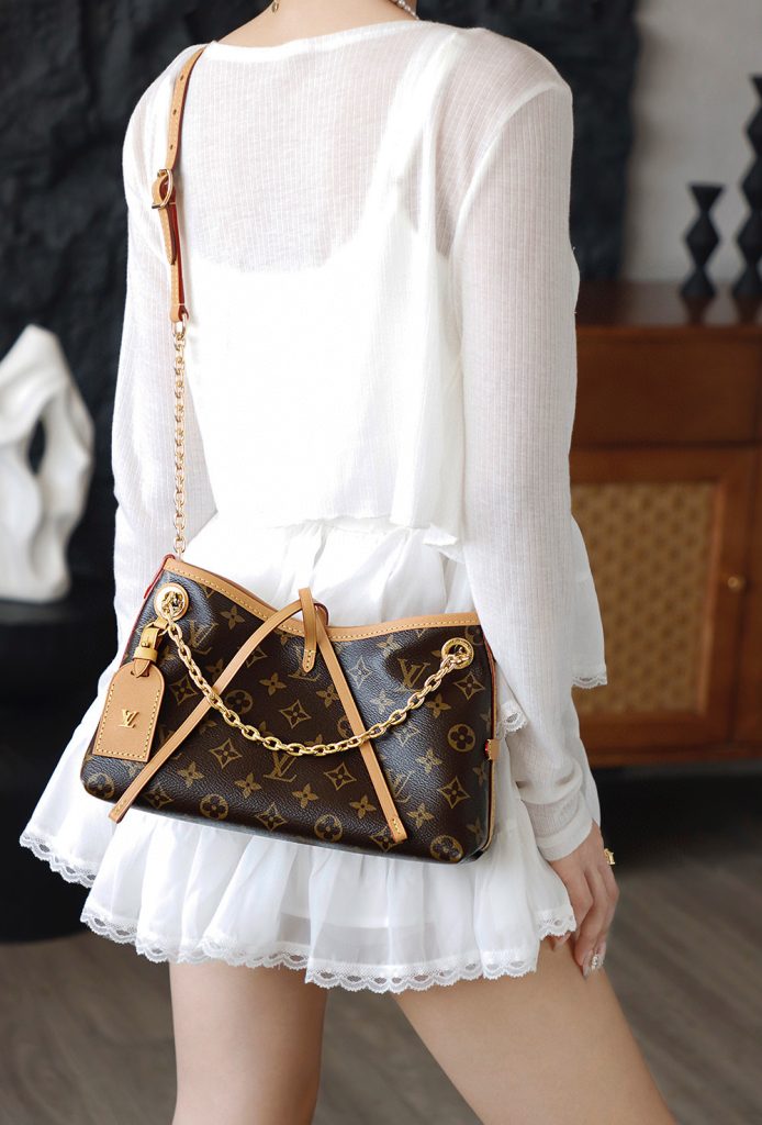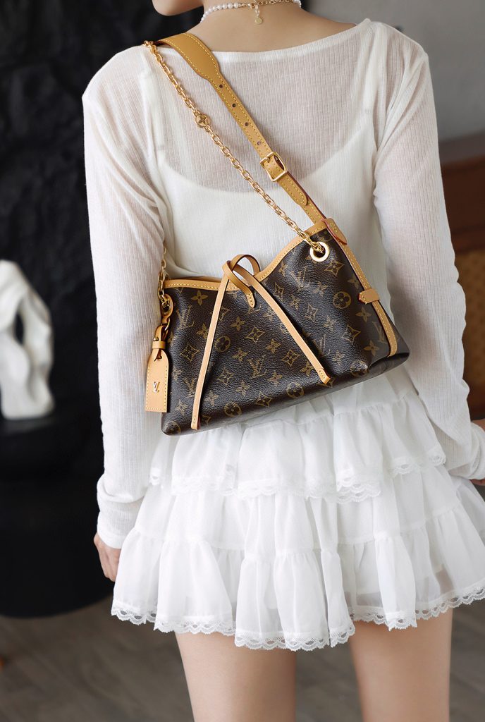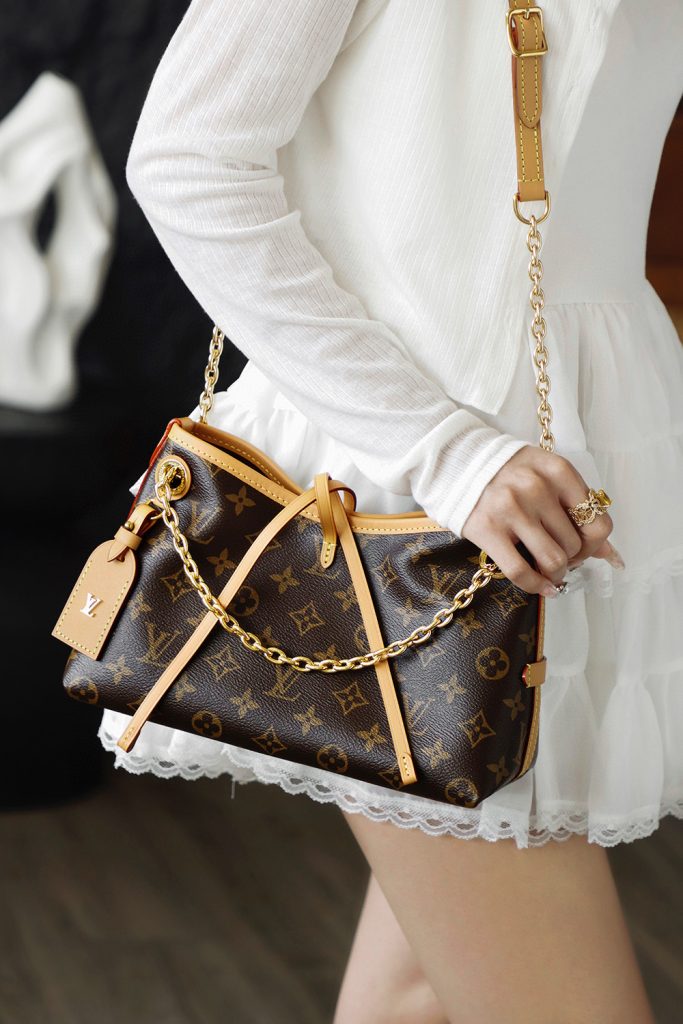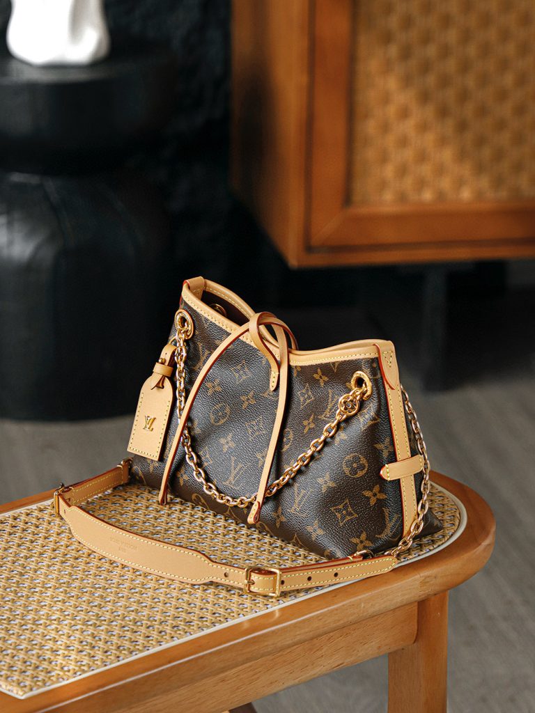 The CarryAll BB is a romantic encounter where fashion meets functionality. Its ingenious design is elevated by golden chain accents adorned with Monogram floralsโsparkling like stars across the night sky.