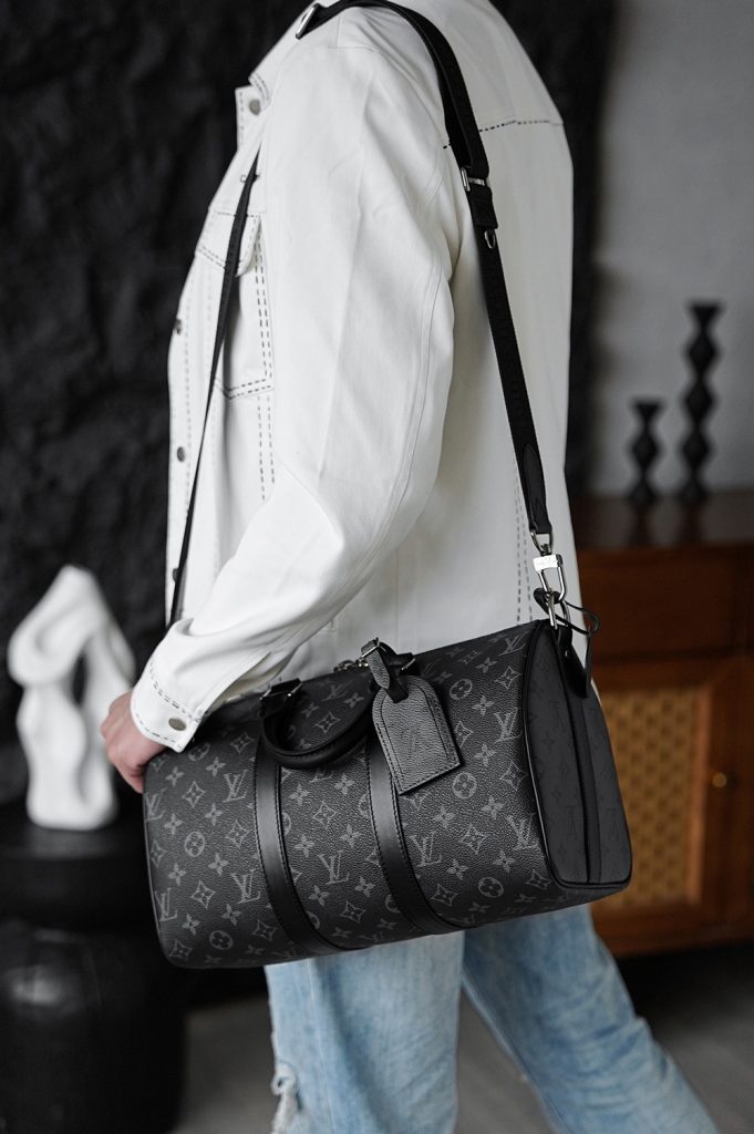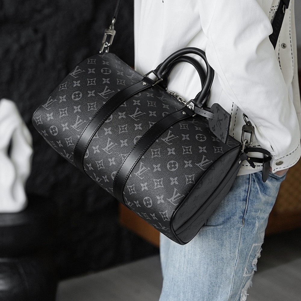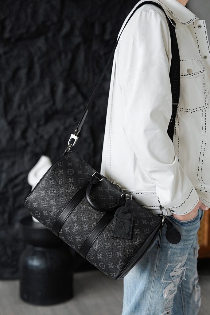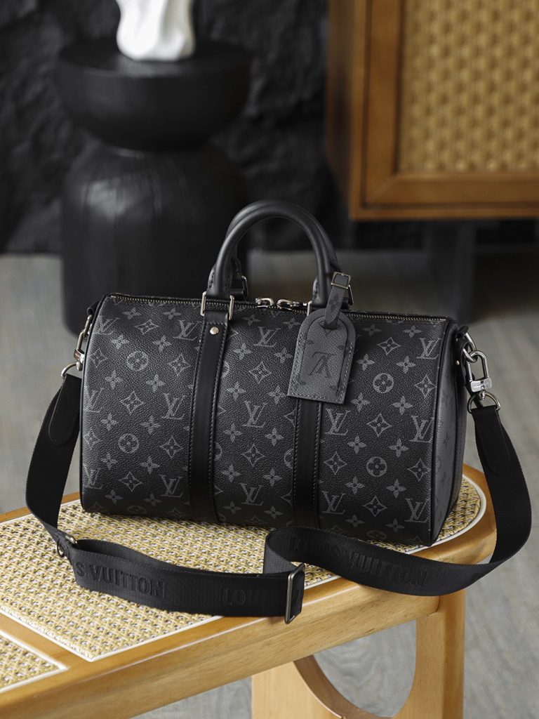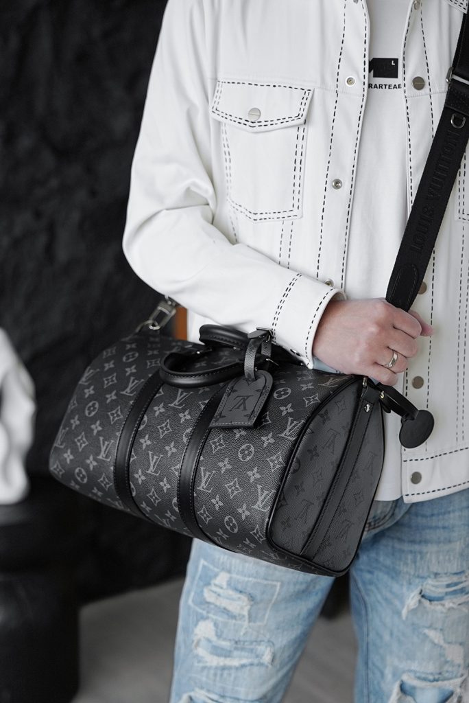 A culmination of a century of heritage, this piece represents the peak of understated elegance. Its iconic elements are subtle yet instantly recognizable. The Keepall Bandoulière 35 “Black Warrior” features a structured silhouette with sharp, three-dimensional tailoring. The shoulder strap curves naturally to fit the shoulder when worn crossbody, while the handles stay crisp and clean when carried by hand — effortlessly elevating a man’s style without trying too hard.