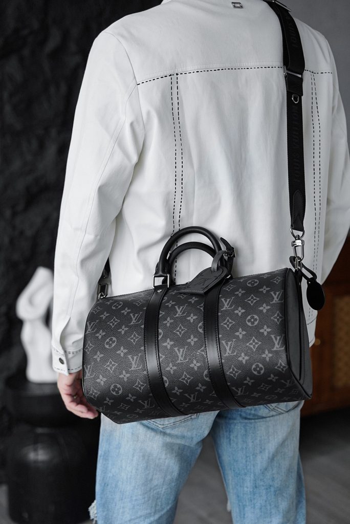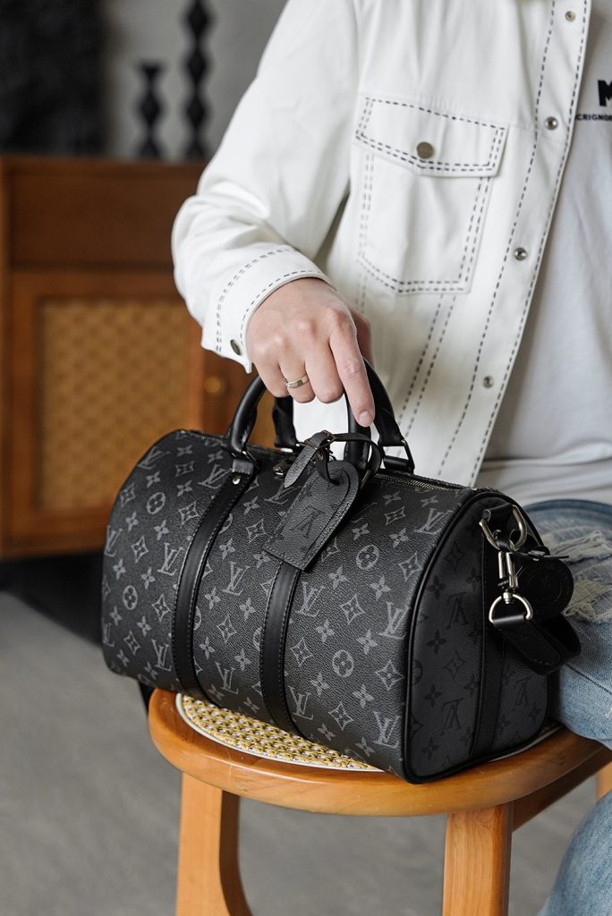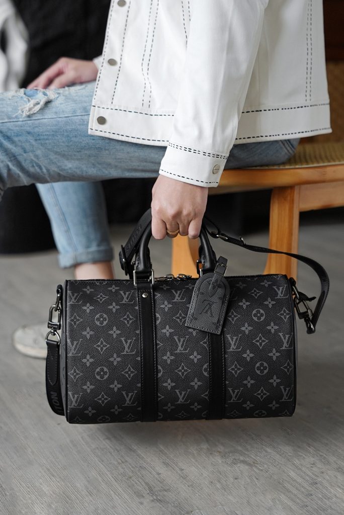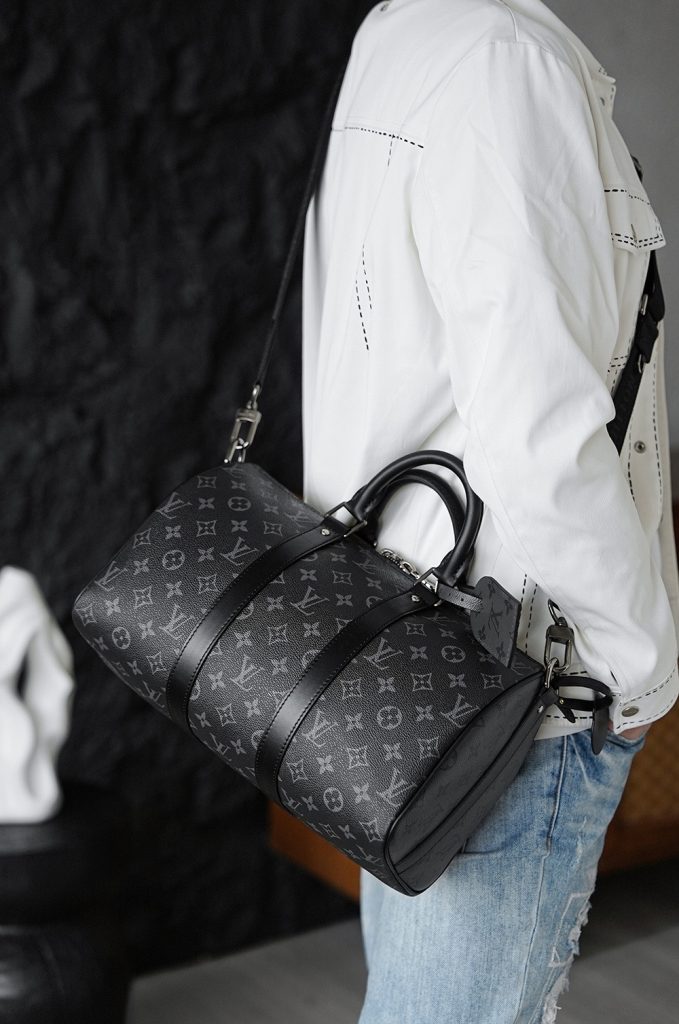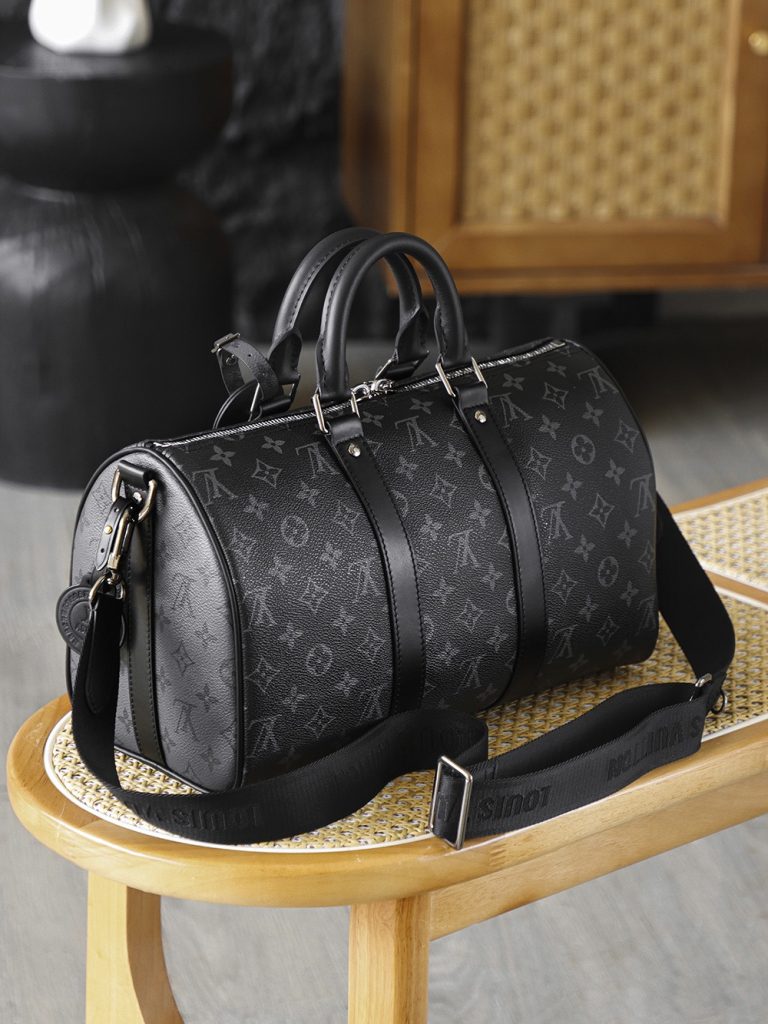 A culmination of a century of heritage, this piece represents the peak of understated elegance. Its iconic elements are subtle yet instantly recognizable. The Keepall Bandoulière 35 “Black Warrior” features a structured silhouette with sharp, three-dimensional tailoring. The shoulder strap curves naturally to fit the shoulder when worn crossbody, while the handles stay crisp and clean when carried by hand — effortlessly elevating a man’s style without trying too hard.