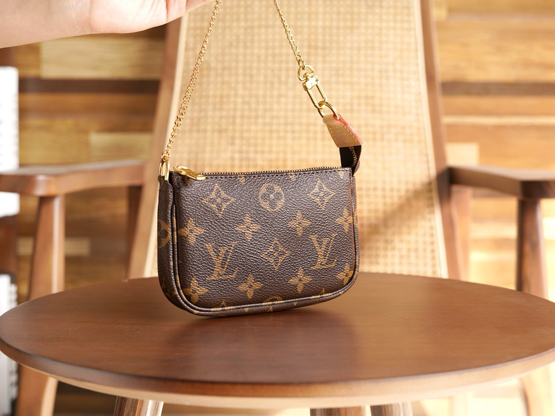 This bag is just too adorable! The LV Mini Pochette Accessoires on Chain handbag is crafted from Monogram canvas, creating a delicate structure that effortlessly stores your small essentials. The short chain and zip closure maintain the original design, while the detachable long chain adds versatility for shoulder and crossbody wear.