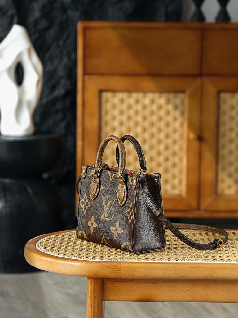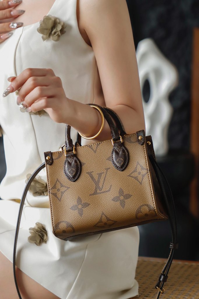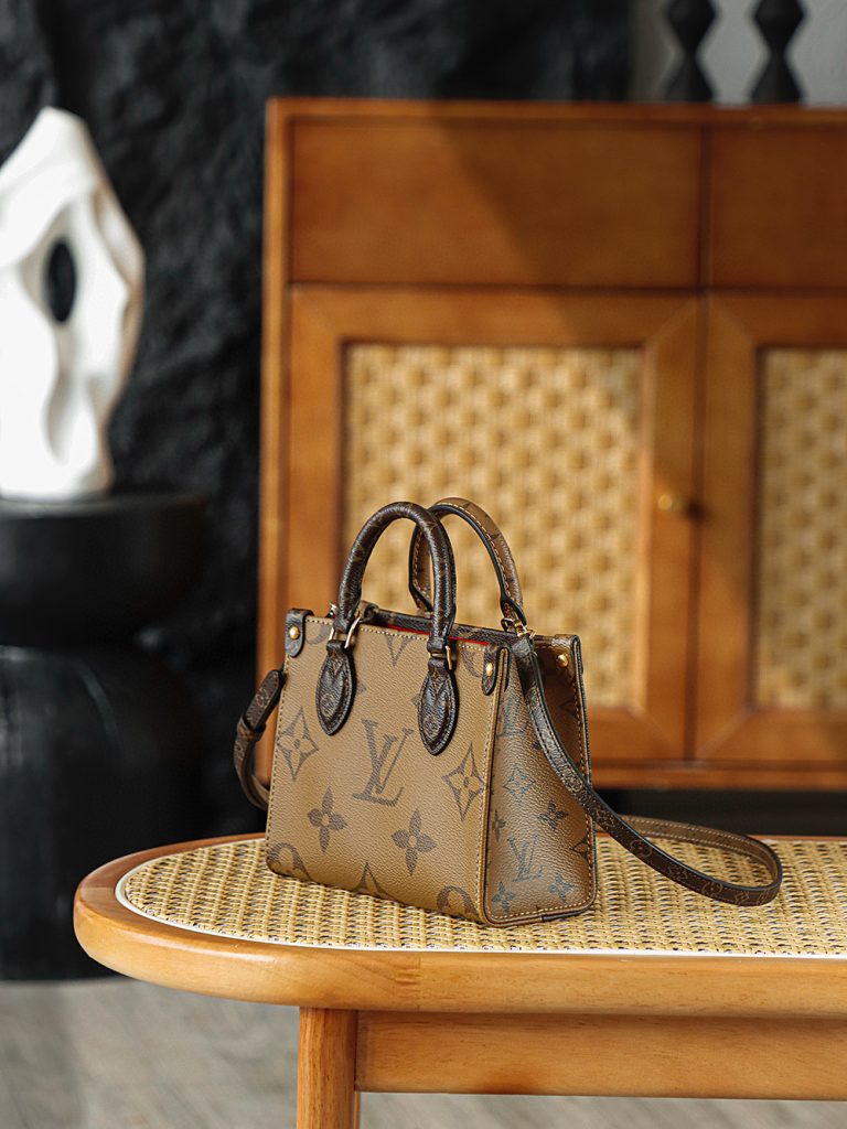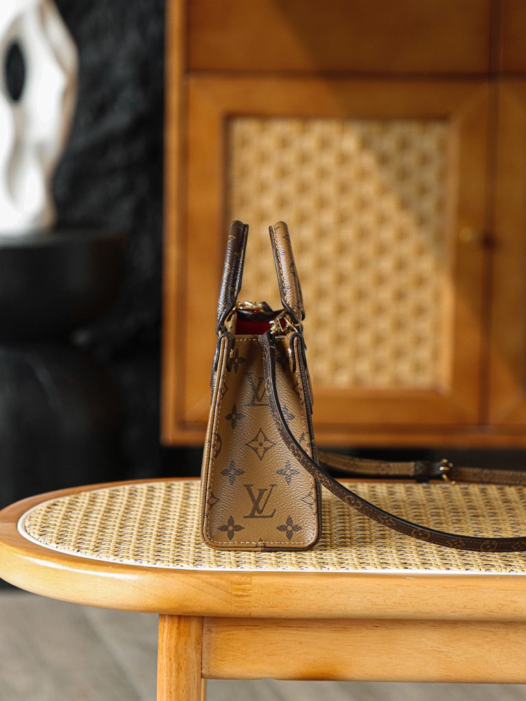 The Louis Vuitton OnTheGo BB tote bag redefines luxury in a compact silhouette. Crafted in the signature caramel Monogram canvas, this mini tote blends timeless elegance with modern fashion appeal. Despite its petite size, the OnTheGo BB handbag offers an unexpectedly spacious interior, perfect for daily essentials. Designed with a detachable and adjustable strap, it transforms effortlessly from a chic handbag to a stylish crossbody bag, making it a must-have piece for every luxury bag collection.