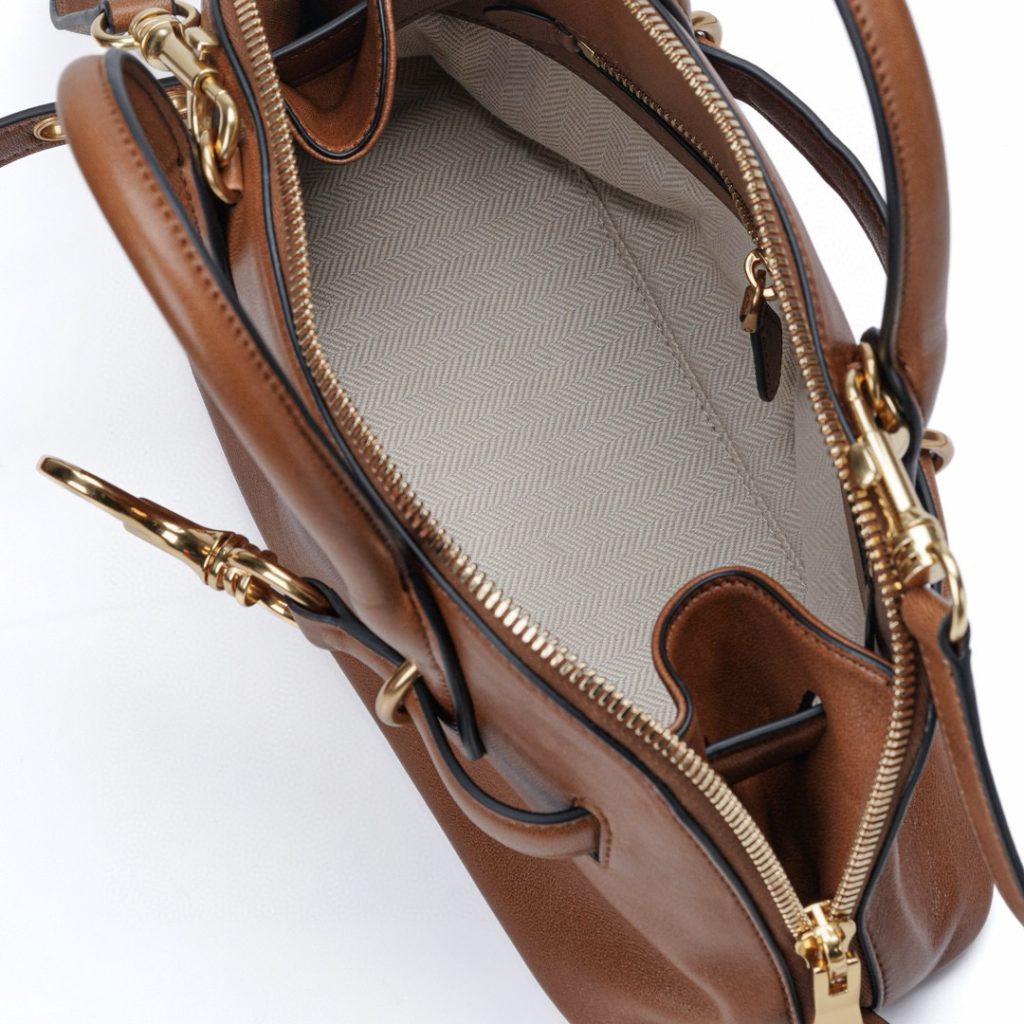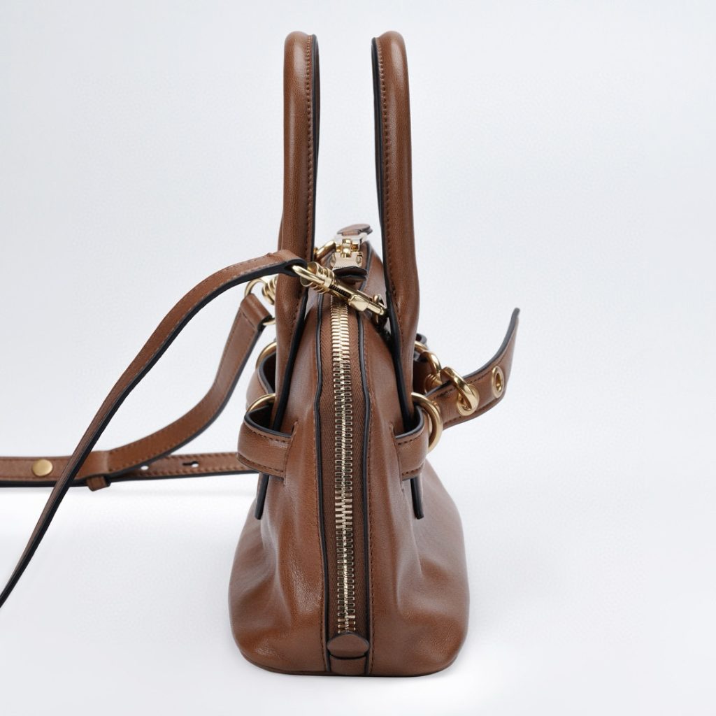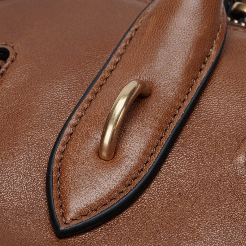 The oak color is a perfect match for the autumn and winter seasons, offering a subtle yet luxurious aesthetic. The bag’s embossed logo adds a vintage flair that’s hard to resist.