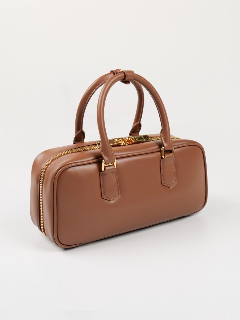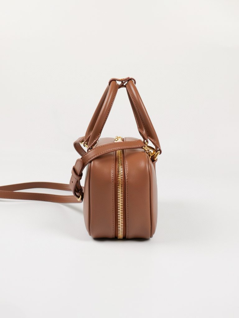 The color is an enchanting cognac. This handbag upholds the unique concept that fashion is an excellent tool for transforming reflections of reality into tangible forms.
