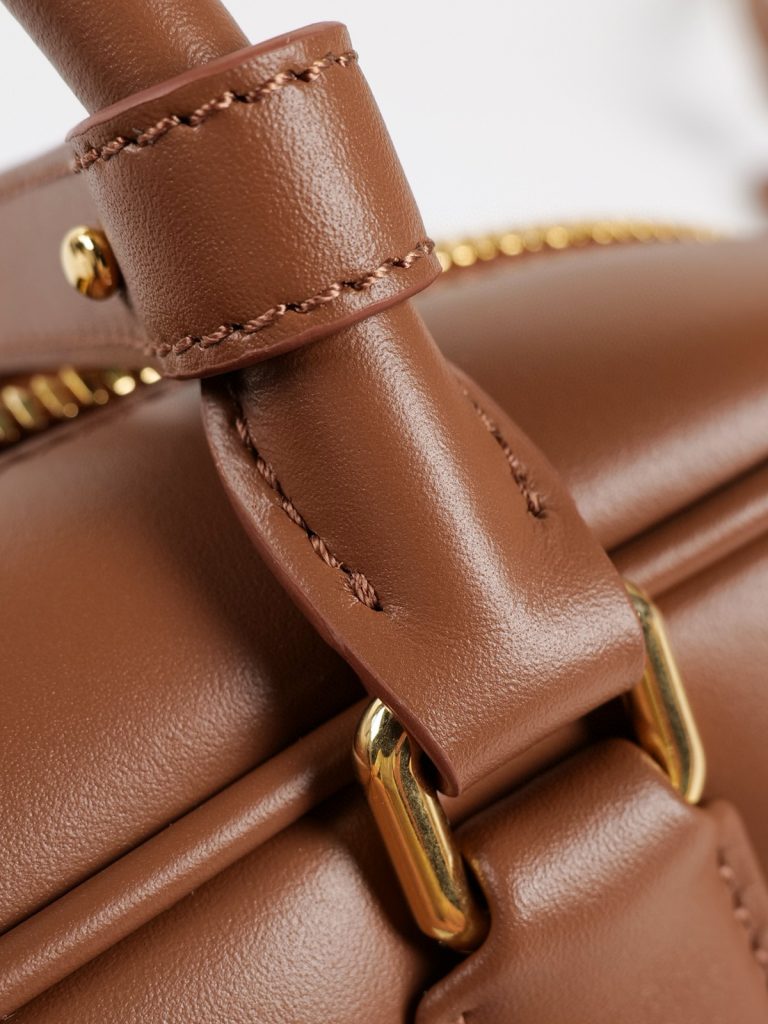 The design details of the handbag are truly stunning. The lightweight padded design gives the bag a full and elegantly curved appearance. The metal hardware is exquisitely shiny, complementing the logo on the surface, like a dazzling pearl, transcending the boundary between function and decoration. The craftsmanship of the handle is delicate, providing a comfortable grip for easy carrying. The stitching on the bag is tight and neat, reflecting a high level of craftsmanship.