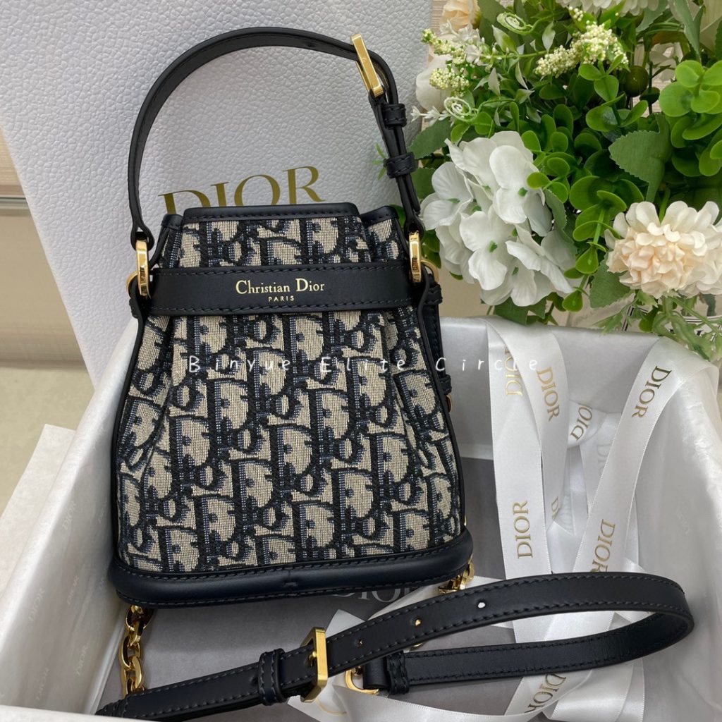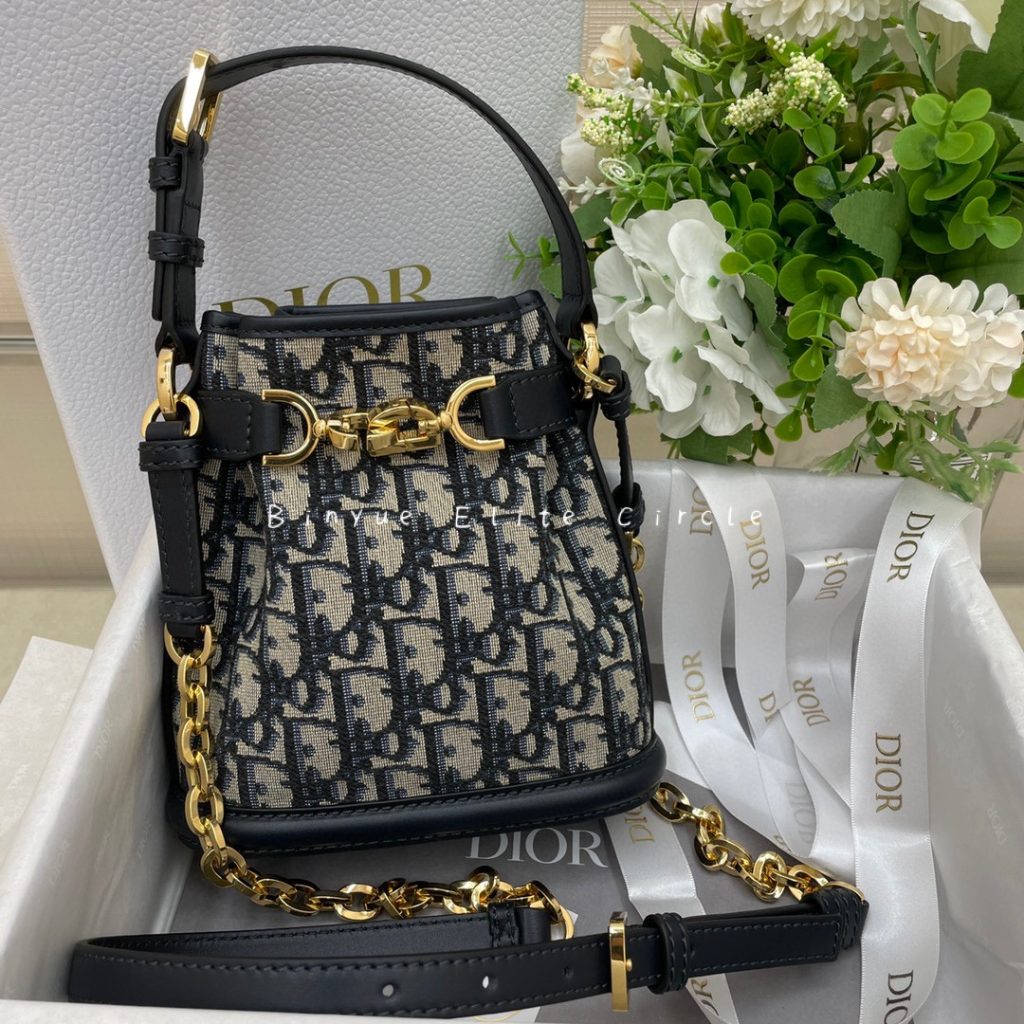 This C’est Dior handbag is a new addition for the 2023 Autumn collection, exuding elegance and timeless charm. Adorned with a blue Oblique pattern and elevated with blue leather details, it features a bucket bag design with a CD Lock closure embellished with a rotating letter D, ensuring secure storage for everyday essentials. The small-sized style comes with top handles and an adjustable, detachable leather strap chain, providing the option to carry it by hand and creating an effortlessly comfortable look.