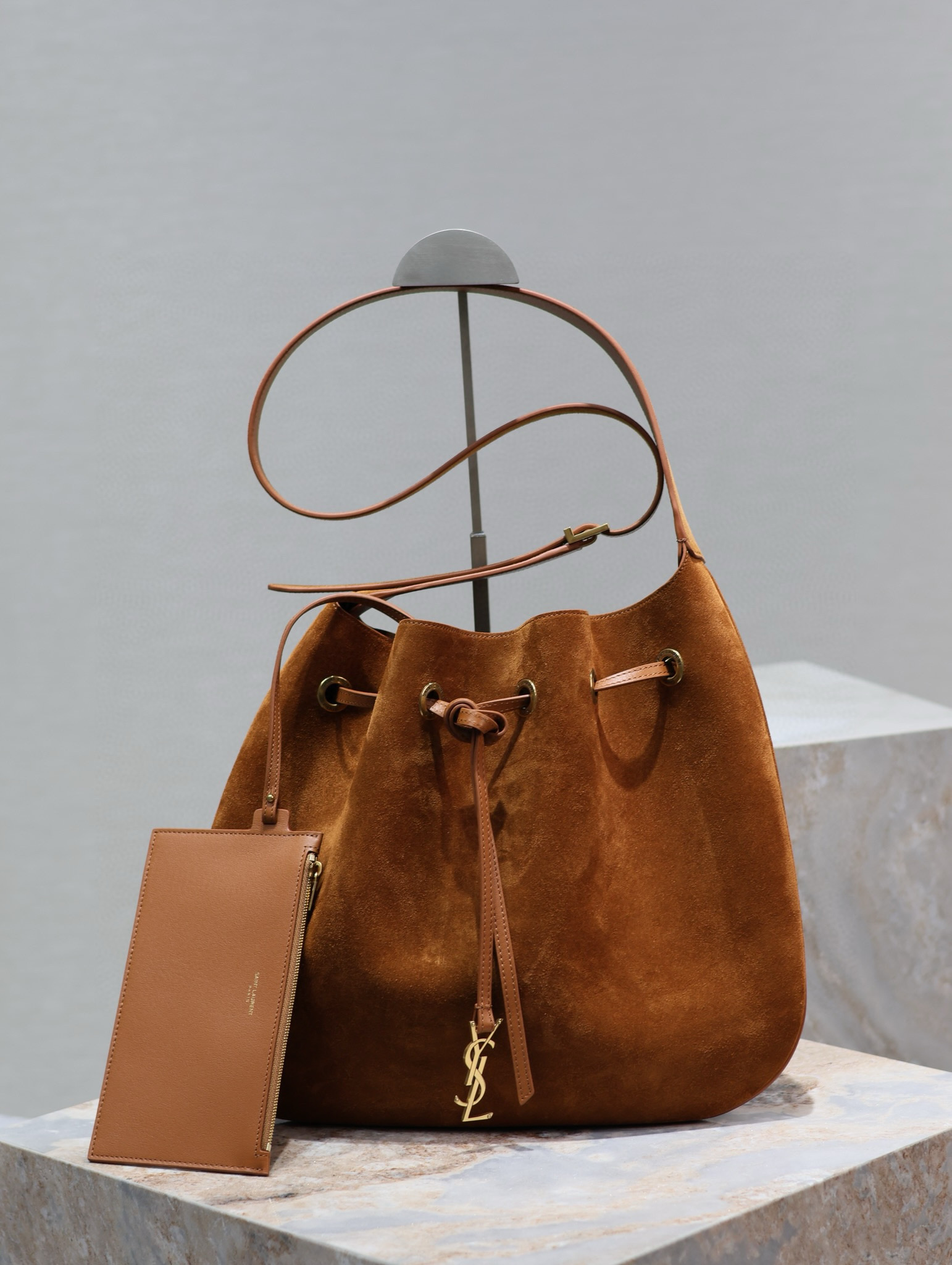 Suede Drawstring Bag / Shoulder Bag♡ The suede design adds a touch of sophistication and fashion to this simple bag~ It’s instantly captivating, perfect for autumn and winter. A must-have for everyday outfits, it’s stylish and durable, with a minimalist and versatile design that’s both cool and casual. It’s practical, lightweight, and absolutely essential! ✧❛‿˂̵✧🍬 Size: 44×33×2.5cm