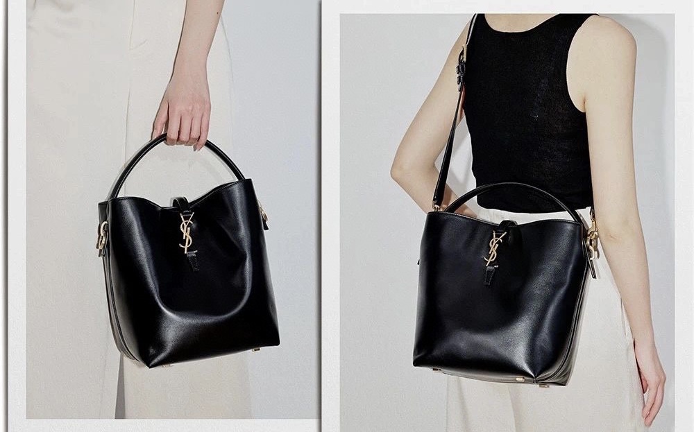 continuing its classic symbols by transforming the YSL logo into a bag clasp and using the letter “L” to fasten the bag’s opening! This brand-new bag design adopts imported calfskin leather, featuring a clean and three-dimensional silhouette. The bag comes with detachable handles and a shoulder strap, and the round metal hook adds a touch of elegance to the bag, outlining the YSL lady’s casual style! The bottom is equipped with metal studs, and the classic iconic metal logo is inserted as a buckle, giving an overall impression of timeless elegance and modern fashion!