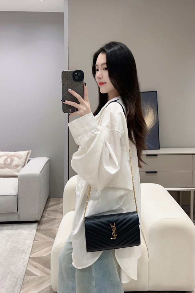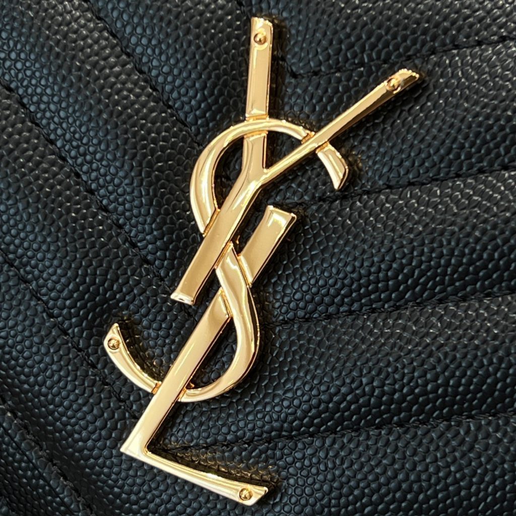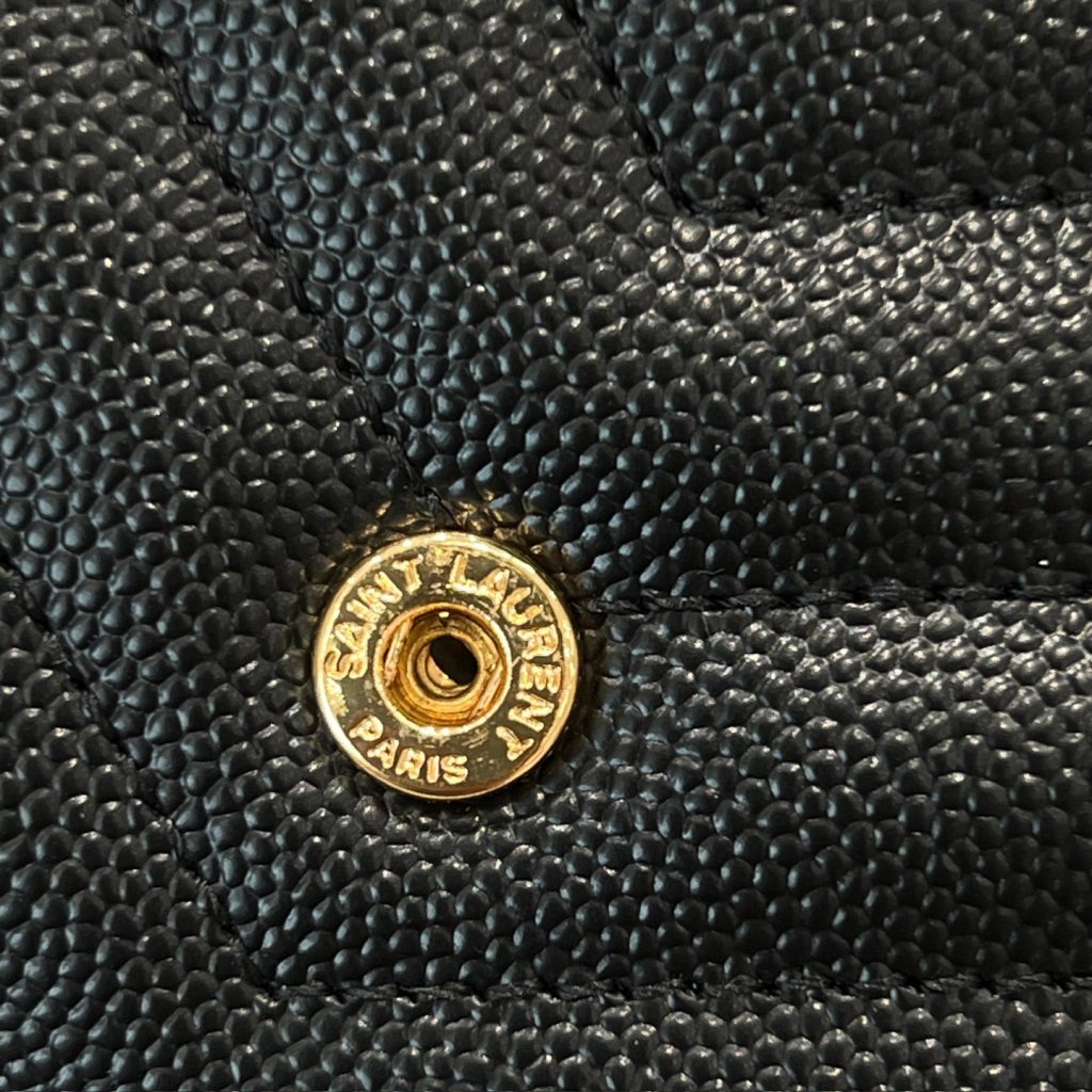 Crafted from signature caviar-grain leather, this medium-sized envelope chain wallet features bold V-shaped quilting and the iconic YSL monogram. Elegant, timeless, and perfectly sized for everyday use, it includes a zipped compartment and multiple card slots for organized storage.