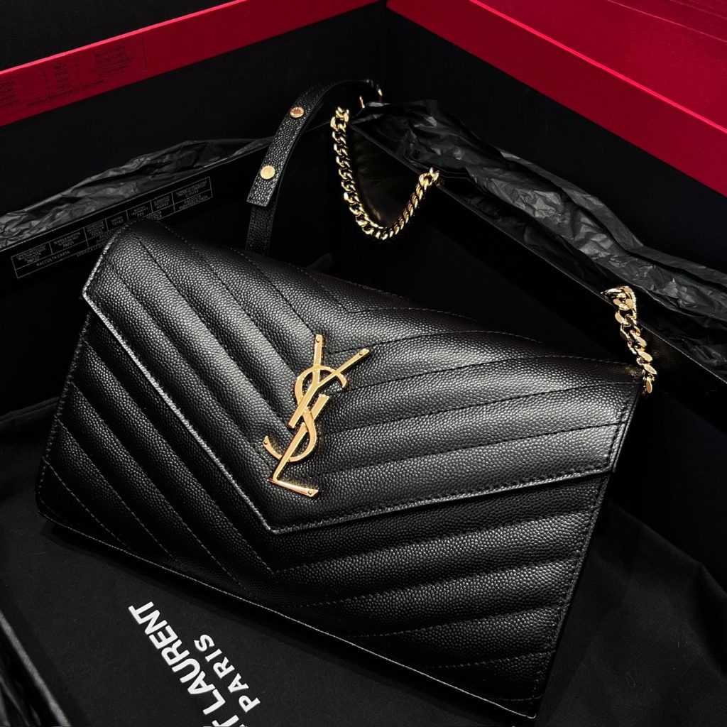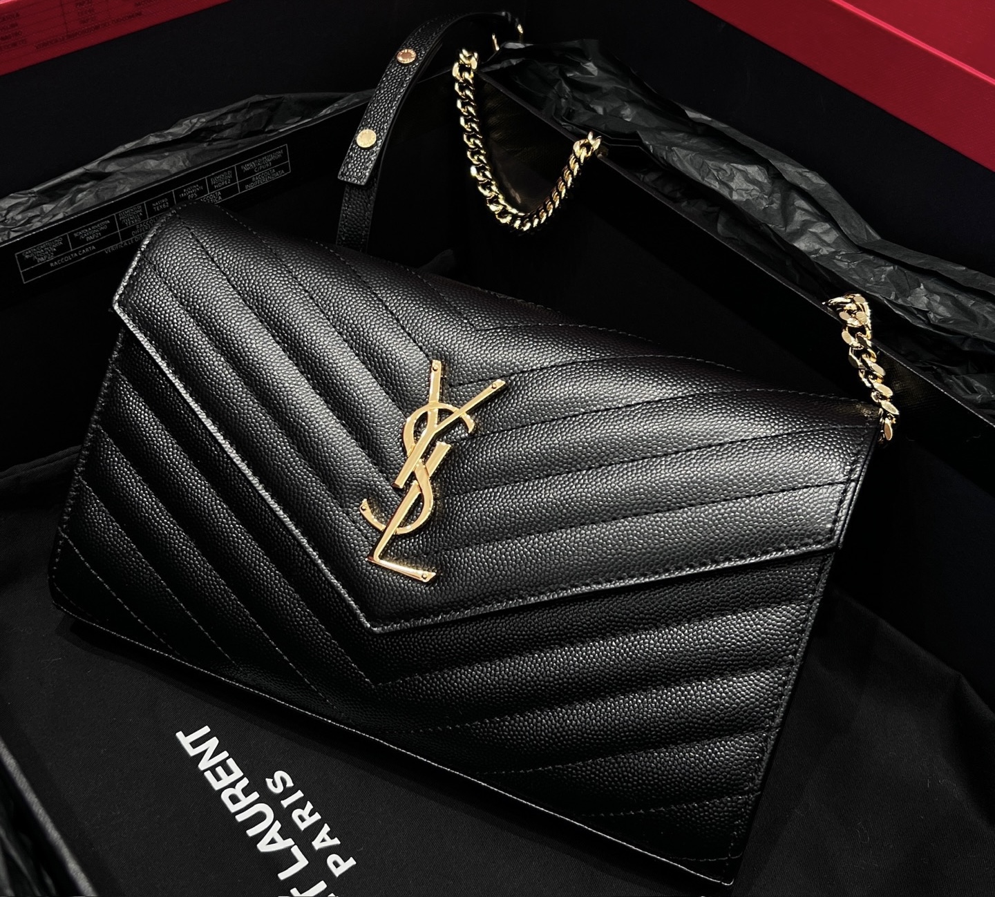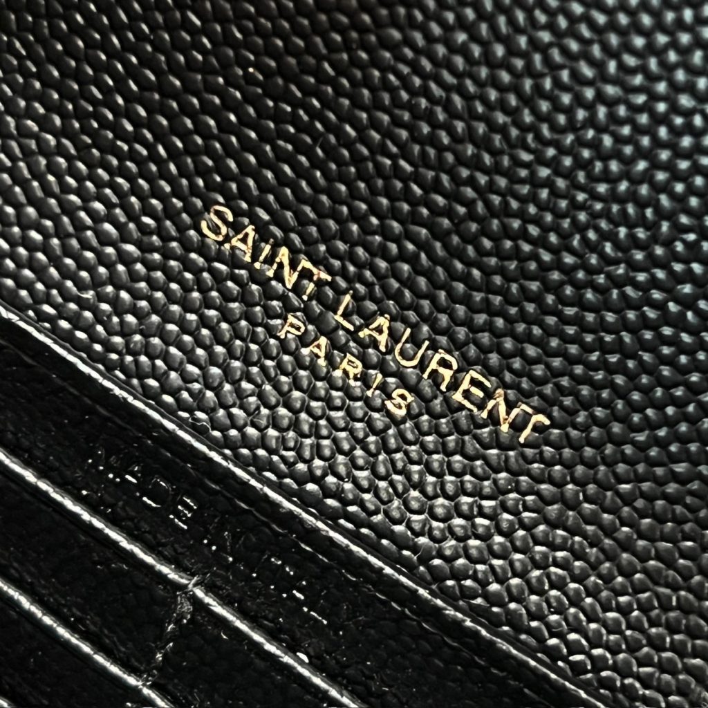 YSL CASSANDRE Medium Envelope Chain Wallet – Black (Caviar Leather)