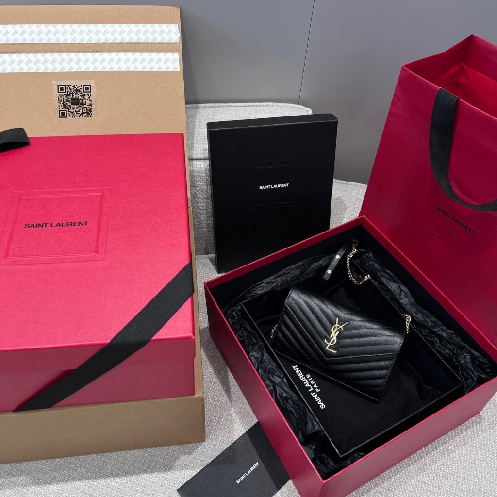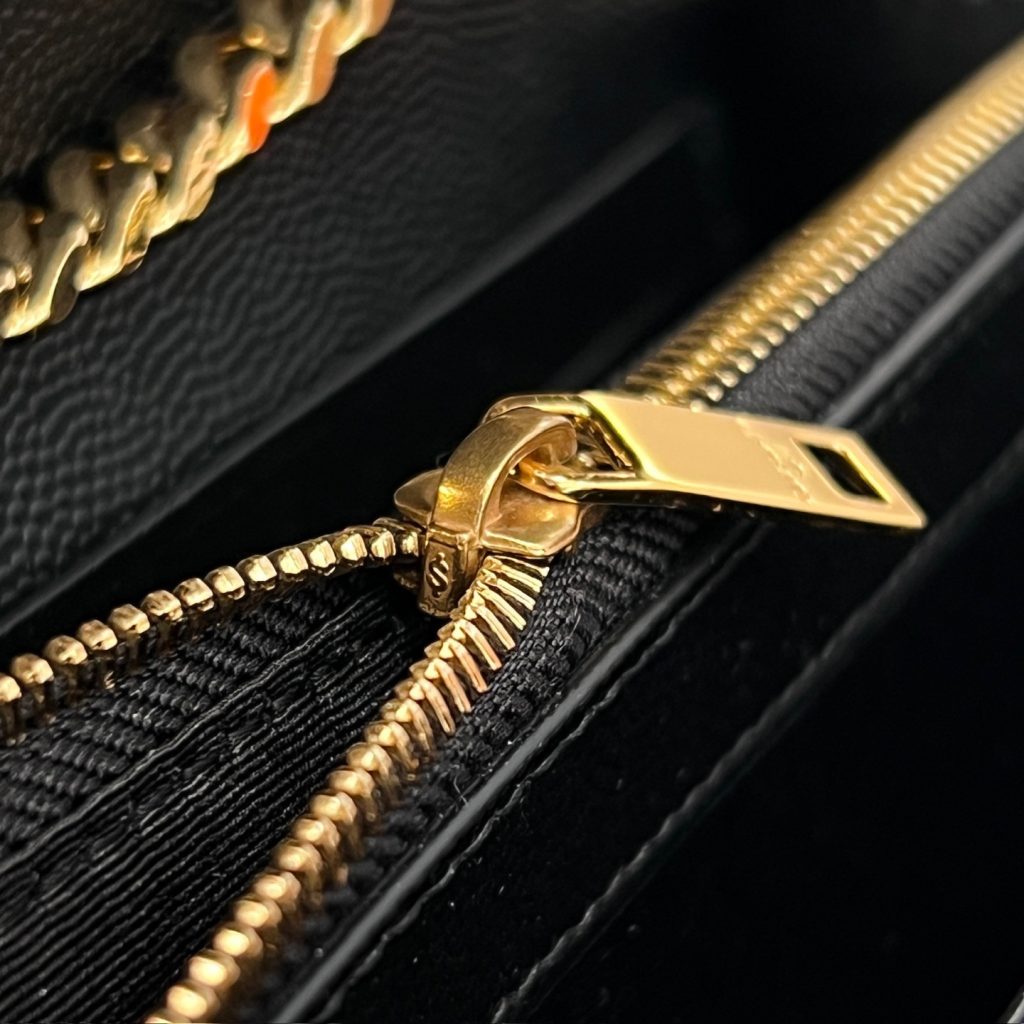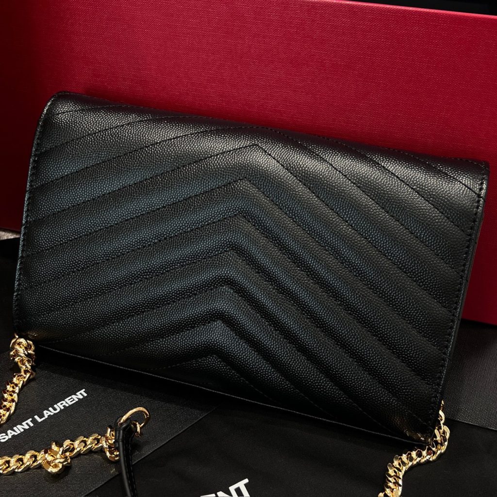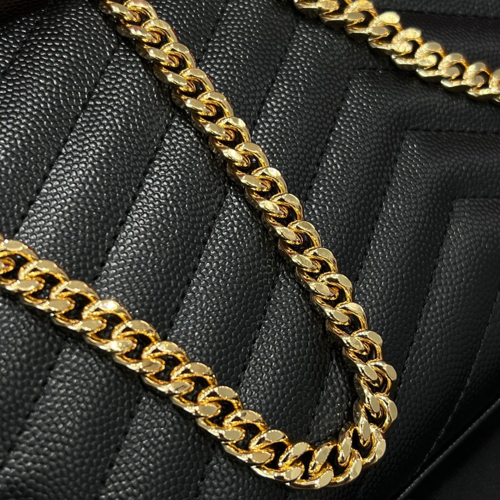 YSL CASSANDRE Medium Envelope Chain Wallet – Black (Caviar Leather)